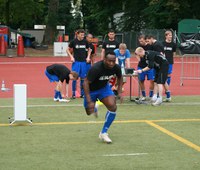 Kurz nachdem dieses Bild entstand, musste Neuzugang Nassirou Ouro-Akpo den gestrigen Sprinttest verletzt abbrechen. Er zog sich einen Muskelfaserriss im linken Oberschenkel zu, wie sich bei einer Kernspintomografie im Kölner Eduardus-Krankenhaus herausstellte. Er wird ca. vier Wochen ausfallen. Ebenfalls nicht mit dabei waren Stephan Glaser (Magen-Darm-Infekt) und Chamdin Said (Bauchmuskelzerrung), der aber zumindestens ein leichtes Lauftraining...