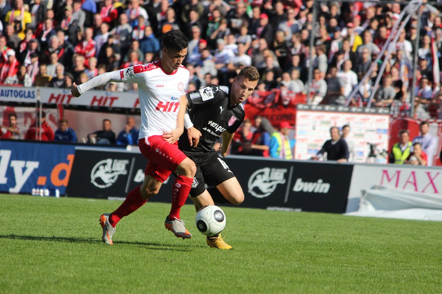 Nach dem zunächst hektischen Beginn flachte die Begegnung etwas ab. Die Fortuna versuchte immer wieder über schnelle Kombinationen vor den Kasten der Gäste zu kommen. Die Hallenser zogen sich in der Folge immer weiter zurück und überließen den Gastgebern das Spielgeschehen. Nach einer längeren Ruhephase kam dann plötzlich Scheu (24.) zu einem gefährlichen Abschluss. Die Chance fungierte als Wachmacher für die Fortuna, die in Person von Keita-Ruel zu zwei weiteren Großchancen kamen. Kleineheismann und wieder Schnitzler klärten aber zwei mal in allerhöchster Not (26.).