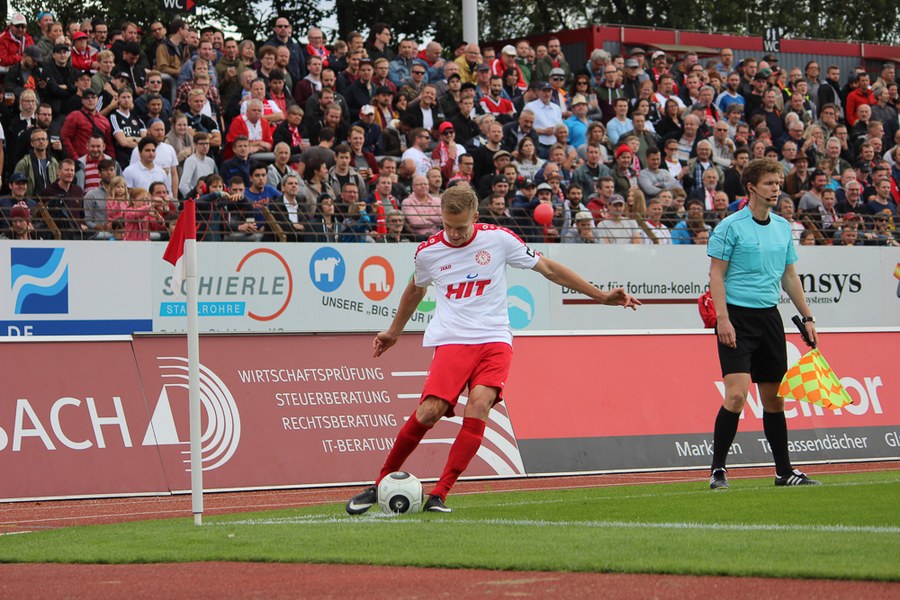 Halle machte gleich von Beginn an Druck und schockte die Fortuna früh. Nach einem Missverständnis in der Fortuna-Abwehr kam El-Helwe an den Ball und versenkte gegen Tim Boss eiskalt. Die Fortuna zeigte sich allerdings nicht lange geschockt und versuchte schnell zu antworten. Dahmani (7.) und Keita-Ruel (8.) scheiterten jedoch an Keeper Schnitzler. Nur kurze Zeit später glichen die Südstädter dann aber aus. Dabei zeigte sich einmal mehr die Standardstärke der Kölner: Kegel flankte einen Freistoß von der rechten Seite an den Fünfer, wo Brandenburger frei einköpfte (10.).