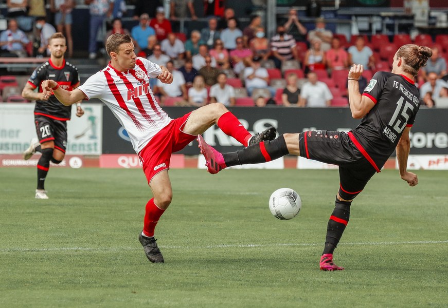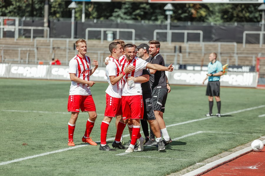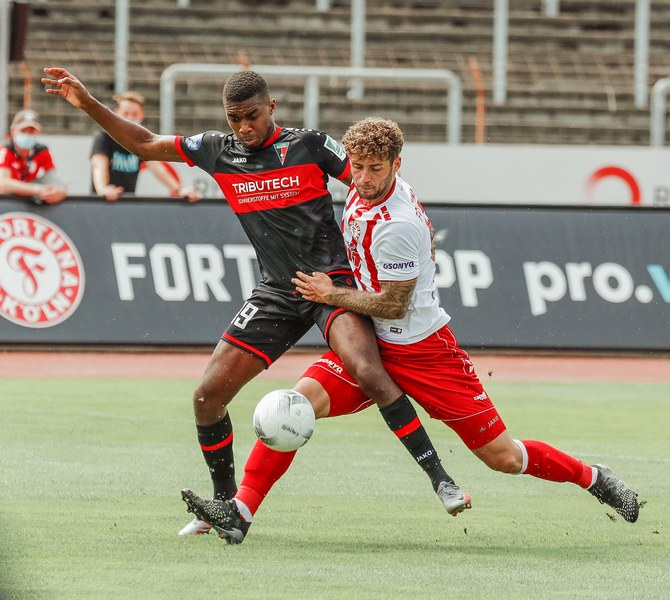 Im ersten Spiel der neuen Regionalliga Saison war der FC Wegberg-Beeck bei strahlendem Sonnenschein zu Gast im Südstadion. In der Anfangsphase schenkten sich beide Mannschaften nichts und führten intensive Zweikämpfe. Zunächst fand das Spielgeschehen überwiegend im Mittelfeld statt, dabei überließ der FC Wegberg-Beeck meist der Fortuna den Ball und lauerte auf Konter. Die erste gute Chance der Partie gehörte dann aber den Wegbergern. Poggenberg foulte einen Spieler der Gäste am Rande des Strafraums. Den fälligen Freistoß brachte Jeff-Denis Fehr in den Strafraum, wo einer seiner Teamkollegen zum Kopfball kam, aber Fortuna Schlussmann André Weis parrierte. Im Gegenzug spielte die Fortuna schnell nach vorne und holte in der 15. Spielminute die erste Ecke heraus. Die Ecke kam von der rechten Seite in den Strafraum, wo Kapitän Jannik Löhden zwar an den Ball kam, diesen aber nicht kontrollieren konnte. Ubabuike holte sich anschließend den Ball und drückte ihn zur 1:0 Führung (16. Minute) über die Linie. Danach machte die Fortuna schnell weiter und bemühte sich sofort zu erhöhen. Nur zwei Minuten später kam Rumpf nach einer Ecke von Najar zum Kopfball, der Ball flog allerdings knapp über die Latte. In der 26. Spielminute gab es dann die nächste große Chance auf 2:0 zu erhöhen: Imbongo schickt Ubabuike links auf die Reise, der legte quer auf Marquet, doch dessen Gegenspieler passte auf und konnte zur nächsten Ecke für Fortuna klären. Diese resultierte in einer weiteren Ecke, welche von Najar hereingebracht wurde und keinen Abnehmer fand. Fortuna war in der restlichen ersten Halbzeit klar überlegen, doch ein weiterer Treffer wollte nicht gelingen.