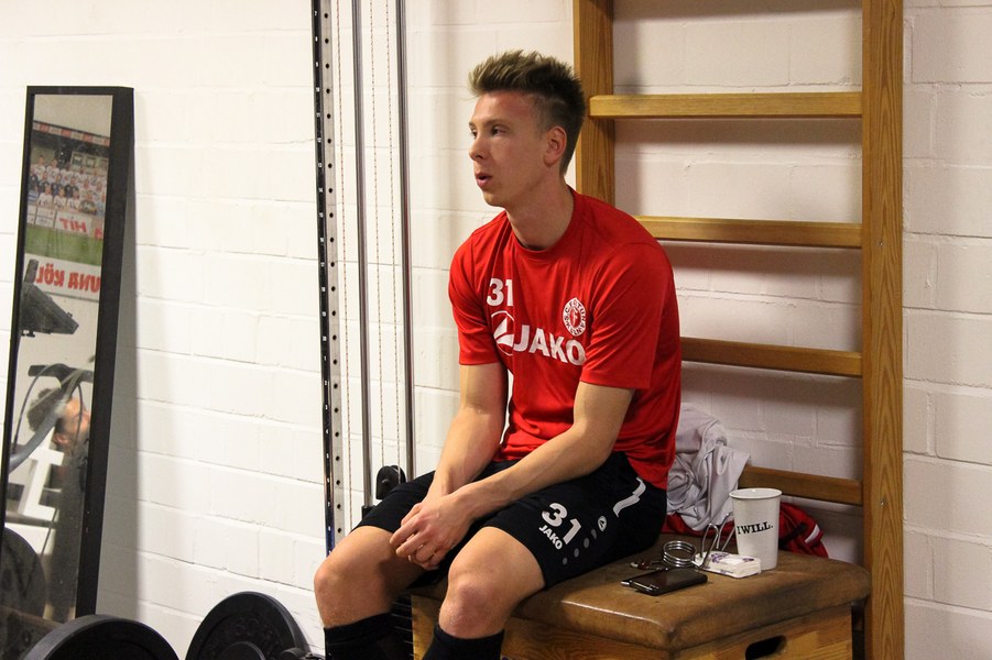 Eckball, Kopfball und Tor! Eigentlich etwas ganz normales in einem Fußballspiel. Etwas spezieller ist es dagegen, wenn so ein Tor in der Nachspielzeit fällt. Eine absolute Besonderheit ist es dagegen, wenn der Torwart diesen Treffer erzielt! Am 13. Spieltag in dieser Saison gelang dies Tom Müller im Spiel gegen Rot-Weiß Erfurt. In der 95. Minute köpfte der Torhüter den viel umjubelten 1:1-Ausgleich. Es war ein Highlight von ihm in einer für ihn besonderen Saison. Es ist nämlich seine erste Saison, in der er in der 3. Liga auf Einsatzzeiten kommt. In 19 Spielen konnte er bislang für den HFC auflaufen. Am Anfang der Saison war Oliver Schnitzler auf der Torhüterposition gesetzt. Nachdem Schnitzler im Spiel gegen Chemnitz aufgrund eines Platzverweises das Spielfeld früh verlassen musste, war Müllers Moment gekommen. Der junge Torhüter konnte mit konstanten Leistungen überzeugen und ist nun die Nummer 1 im Tor der Hallenser. Aber auch höherklassigen Vereinen ist der Keeper mittlerweile aufgefallen. Der Bundesligist RasenBallsport Leipzig soll Interesse an ihm haben. Es wäre der nächste Sprung eines HFC-Keepers in höhere Gefilde: Fabian Bredlow, der letzte Saison in Halle im Tor stand, wechselte letzten Sommer zum 1. FC Nürnberg und klopft da mit dem Club an die Tür der 1. Bundesliga.