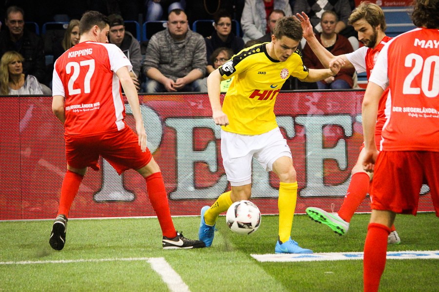 Als nächstes ging es gegen den 1. FC Kaan-Marienborn ran. Diesmal ging der Drittligist standesgemäß in Front durch einen wuchtigen Schuss von Schneider. Marienborn gelang allerdings schnell der Ausgleich und wie: Der Torhüter überrumpelte Boss im Tor der Fortuna und stellte auf 1:1. Mit viel Kampf ging es anschließend um das Weiterkommen. Die Fortuna behielt allerdings einen kühlen Kopf und ging durch Bösings zweiten Turniertreffer wieder in Front. Mit viel Konzentration brachte man die Partie anschließend über die Bühne. Dahmani und Alibaz erhöhten zum 4:1-Endstand.