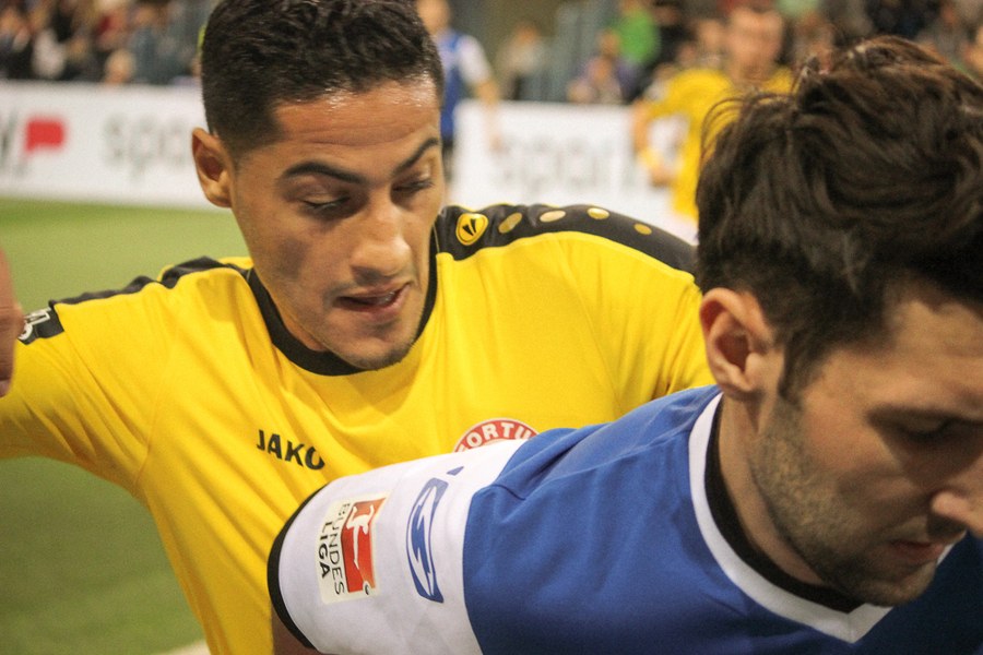 Im Kampf ums Finale bekam es die Fortuna mit Ligakonkurrent MSV Duisburg zu tun. Im Duell der Drittligisten ging es dabei direkt konzentriert zur Sache. So konnte sich Boss ein ums andere Mal spektakulär auszeichnen. Schließlich gelang der Fortuna sogar der erste Schlag durch das Führungstor von Alibaz. Nach dem Seitenwechsel gelang Leutenecker aber der Ausgleich für die Zebras. Es war nun ein Duell auf Augenhöhe, das bis in die Schlussminuten ausgeglichen blieb. Dann setzte der MSV den entscheidenden Punch: Wieder war es Leutenecker, der für Duisburg traf. Die Fortuna wollte nun mit aller Macht den Ausgleich und hatte durch Bösing die große Chance. Quasi im Gegenzug markierte Albutat aber den überlegten Treffer zum 3:1-Endstand.