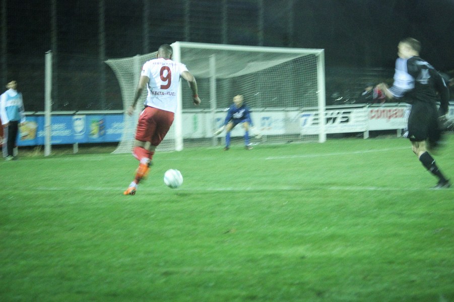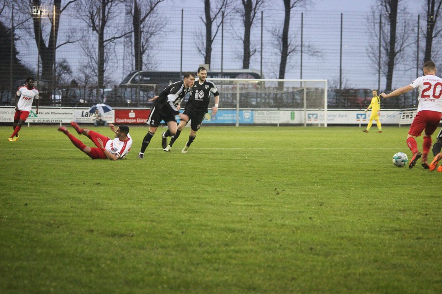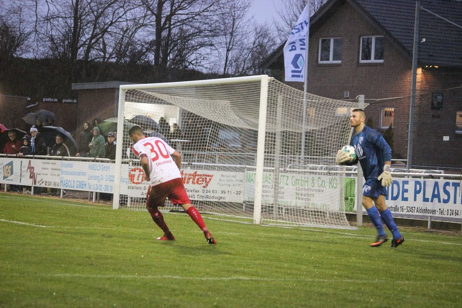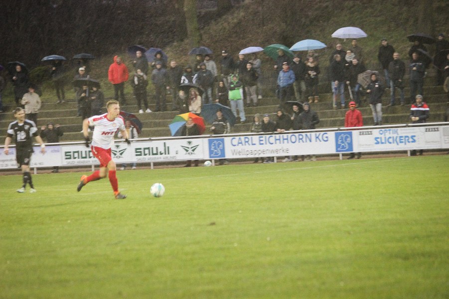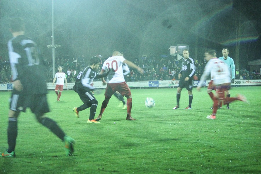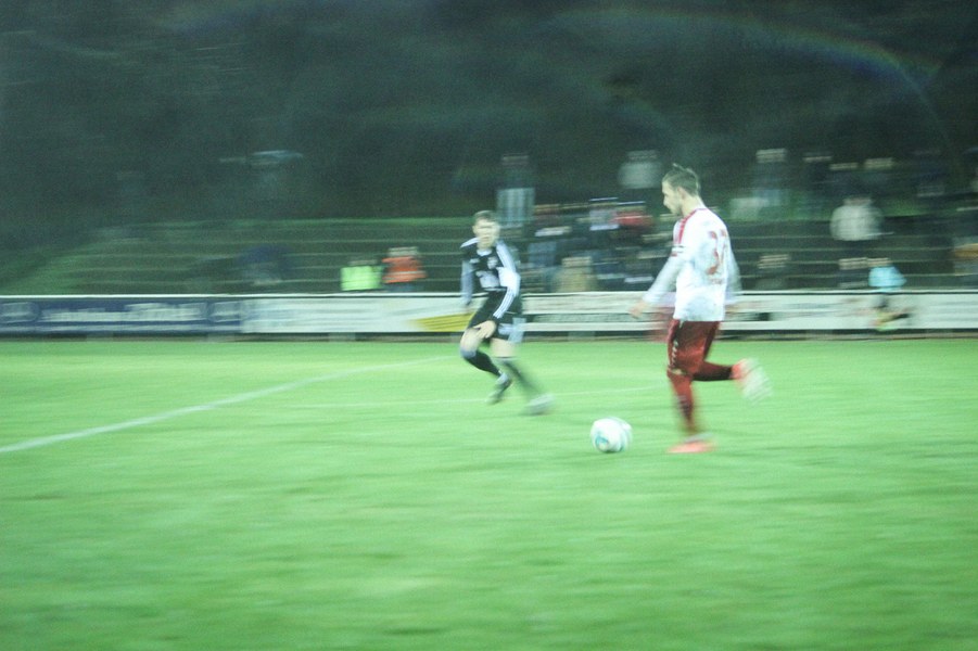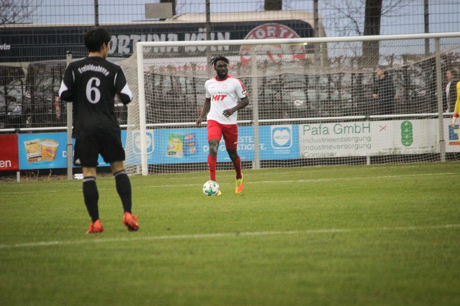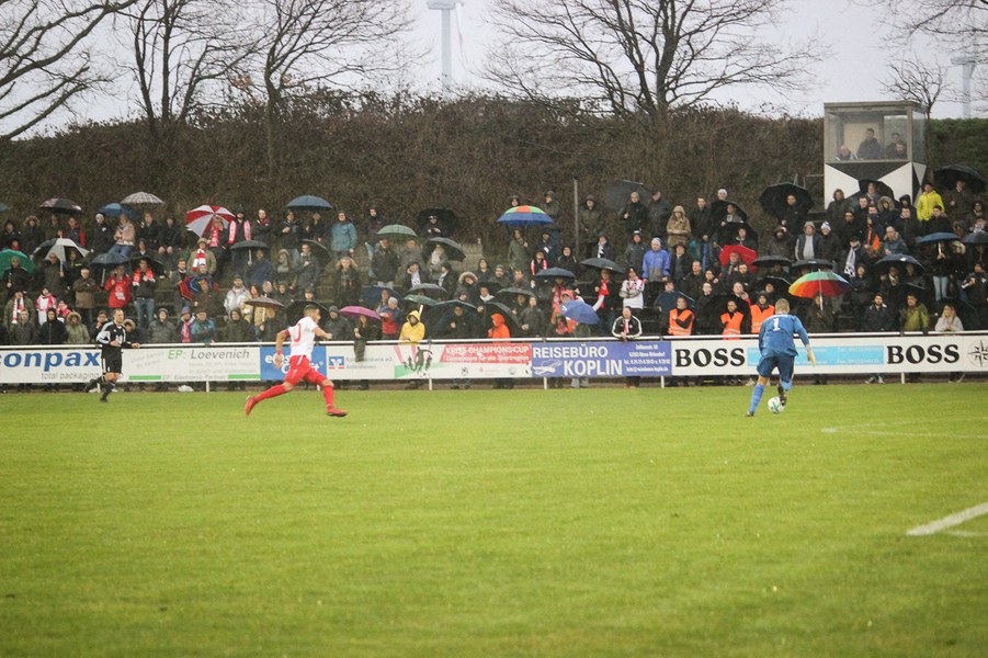 Für Borussia Freialdenhoven war es das absolute Highlightspiel, was man auch merkte. Die Hausherren liefen in der Anfangsphase früh an und lauerten auf Fehler der Kölner. Der Plan von Freialdenhoven ging dabei früh auf: Nico Brandenburger foulte Daescu im Strafraum, es gab Elfmeter. Simon verwandelte den Strafstoß mit Gewalt sicher in der Mitte (8.). Die Fortuna hatte am frühen Gegentreffer durchaus zu knabbern: Simon setzte sich gegen seine Gegenspieler durch. Sein Distanzschuss ging jedoch am Tor vorbei (16.). Erst Mitte der ersten Halbzeit kamen die Kölner besser in die Partie. Farrona Pulido zog aus 25 Metern ab und Werres im Tor von Freialdenhoven musste sich ganz lang machen (19.). Die beste Phase hatten die Gäste 20 Minuten vor Pausenpfiff. Als erstes wurde Kegels Schuss kurz vor der Linie abgeblockt (32.). Die nächste Riesenchance ließ danach nicht lange auf sich warten: Brandenburger zog aus der Distanz ab und traf die Latte, der Nachschuss von Scheu ging knapp am Tor vorbei (35.). Die Fortuna konnte vor der Pause nur noch einmal durch einen Freistoß von Kegel gefährlich werden, der knapp am Tor vrobei ging (44.). So ging es mit einer letztlich glücklichen Führung für Borussia Freialdenhoven in die Pause.