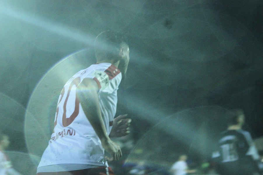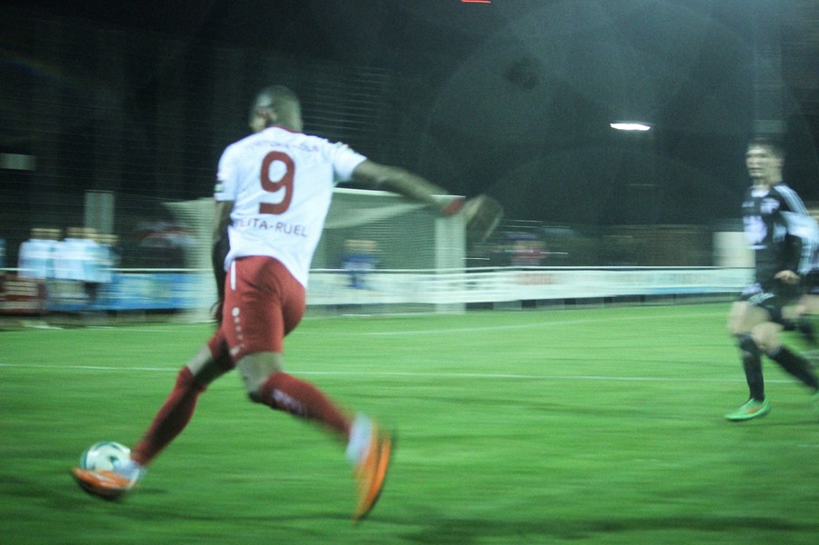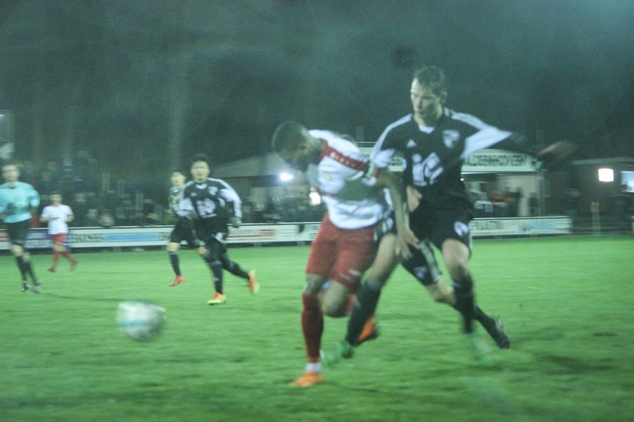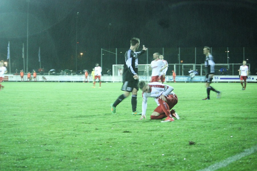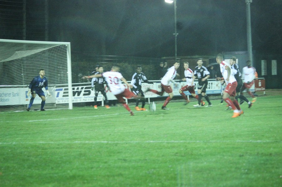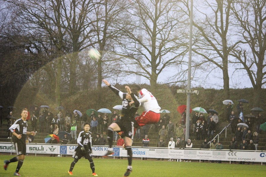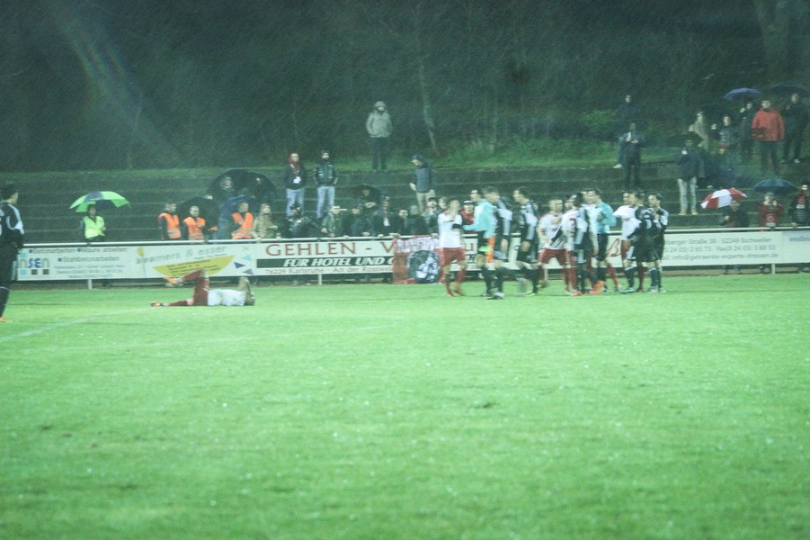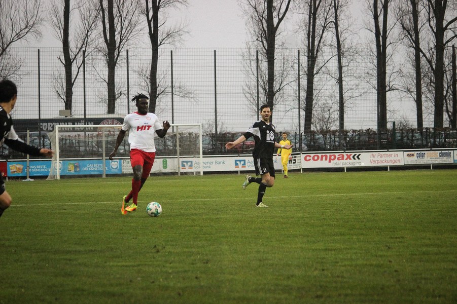 Für Borussia Freialdenhoven war es das absolute Highlightspiel, was man auch merkte. Die Hausherren liefen in der Anfangsphase früh an und lauerten auf Fehler der Kölner. Der Plan von Freialdenhoven ging dabei früh auf: Nico Brandenburger foulte Daescu im Strafraum, es gab Elfmeter. Simon verwandelte den Strafstoß mit Gewalt sicher in der Mitte (8.). Die Fortuna hatte am frühen Gegentreffer durchaus zu knabbern: Simon setzte sich gegen seine Gegenspieler durch. Sein Distanzschuss ging jedoch am Tor vorbei (16.). Erst Mitte der ersten Halbzeit kamen die Kölner besser in die Partie. Farrona Pulido zog aus 25 Metern ab und Werres im Tor von Freialdenhoven musste sich ganz lang machen (19.). Die beste Phase hatten die Gäste 20 Minuten vor Pausenpfiff. Als erstes wurde Kegels Schuss kurz vor der Linie abgeblockt (32.). Die nächste Riesenchance ließ danach nicht lange auf sich warten: Brandenburger zog aus der Distanz ab und traf die Latte, der Nachschuss von Scheu ging knapp am Tor vorbei (35.). Die Fortuna konnte vor der Pause nur noch einmal durch einen Freistoß von Kegel gefährlich werden, der knapp am Tor vrobei ging (44.). So ging es mit einer letztlich glücklichen Führung für Borussia Freialdenhoven in die Pause.