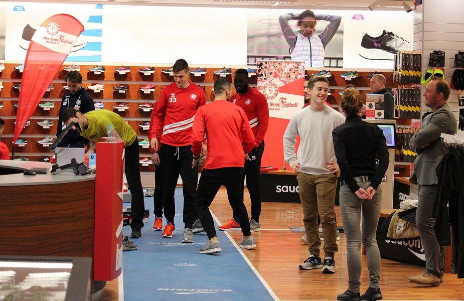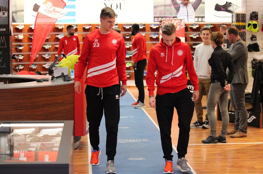 Ob Trainer Tomasz Kaczmarek oder die Spieler Bernard Kyere, Ali Ceylan, Nico Ochojski, Okan Kurt, Alem Koljic, Moritz Fritz und Benjamin Pintol – alle nahmen gerne die umfangreiche Beratung in Anspruch, die bei Bunert bei jedem Besucher dazugehört. Und selbstverständlich wurden die Laufschuhe von Saucony auch gleich ausprobiert. Dazu gab es in den 350 Quadratmeter großen Räumlichkeiten reichlich Gelegenheit.