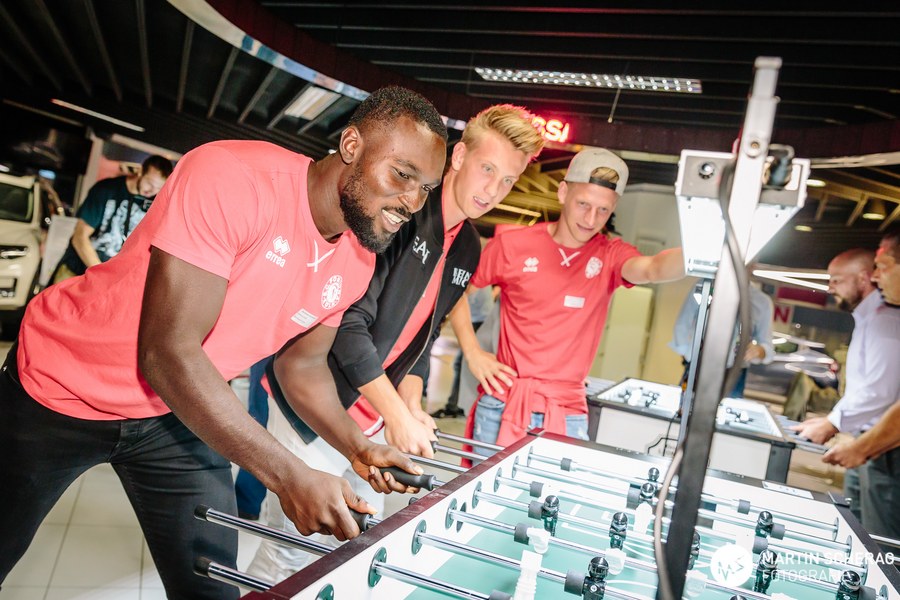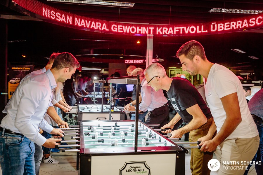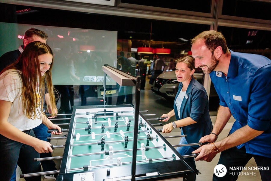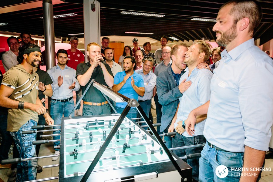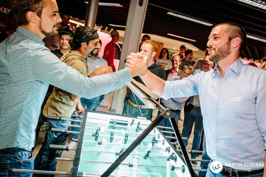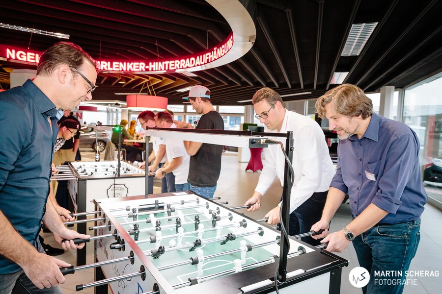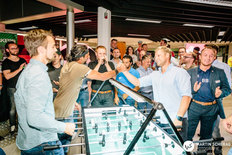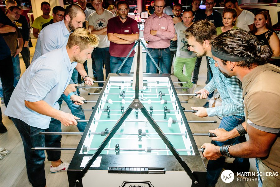 Zum vierten Mal bat die Fortuna die Partnerunternehmen zum Tischfußball. Zum dritten Mal in Folge fand die Veranstaltungen im Showroom des Autohaus Dirkes statt. An insgesamt elf Kicker-Tischen spielten insgesamt 44 Mannschaften um zwei Championsleague-Tickets für die Partie Borussia Dortmund gegen Atlético Madrid.