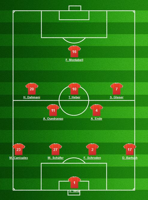 Die Co-Trainer von deinfussballclub.de haben sich für die 4-2-3-1-System entschieden. Dabei soll Alassane Ouedraogo ins defensive Mittelfeld rutschen.