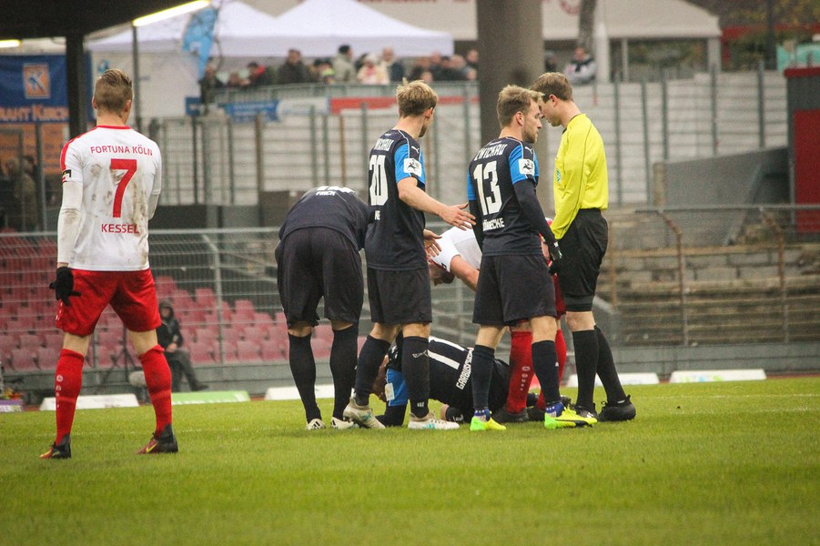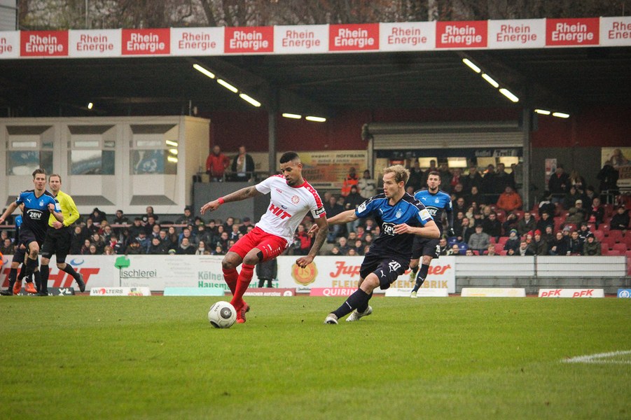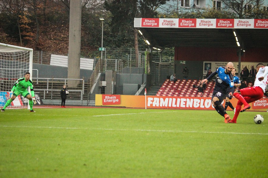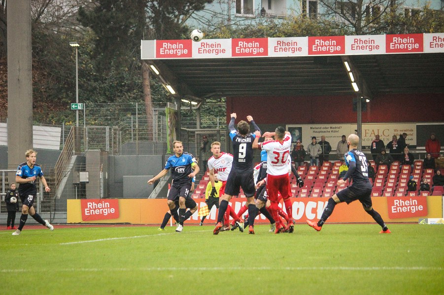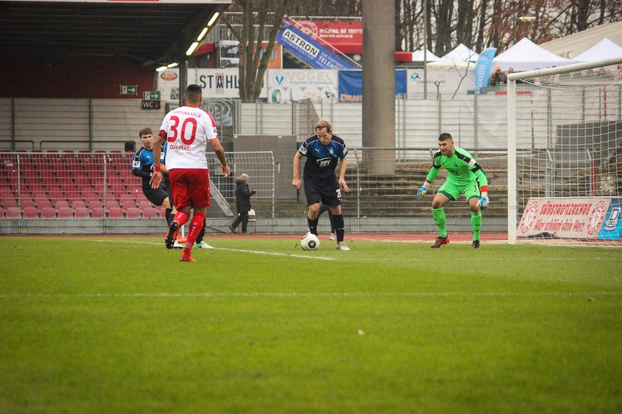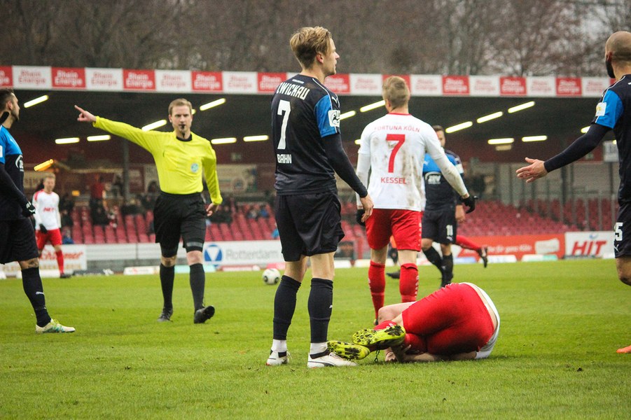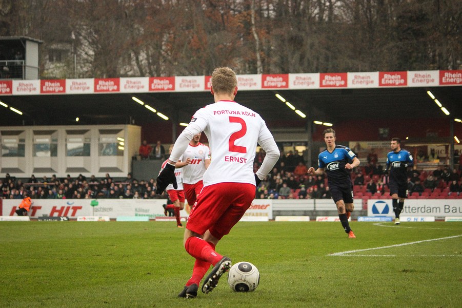 Das Spiel begann zunächst schleppend. Bis auf Distanzschüsse von Kessel und Garbuschweski passierte offensiv zunächst wenig (2./4.). Beiden Teams waren die Negativerlebnisse der letzten Wochen anzumerken. So wollte man zunächst Sicherheit in seine Aktionen bekommen. Die Folge waren viele Aktionen zwischen den Strafräumen mit wenig ansehnlichen Kombinationen. Erst Mitte der ersten Halbzeit meldet sich die Fortuna spielersich an, als Kegel auf Scheu ablegte und der Brinkies zur Parade zwang (22.). Die neugeformte Kölner Viererkette um Ernst, Bender, Theisen und Röcker zeigte sich defensiv gegen Zwickaus König zumindest sattelfest. Nach einem Konter über Röcker und Keita-Ruel erarbeiteten sich die Südstädter über einen Kegel-Abschluss ein leichtes Chancenplus (30.). Schließlich schnupperte Theisen an der Fortuna-Führung, als er beinahe einen Kegel-Freistoß mit der Brust über die Linie bugsierte (32.). Schließlich belohnte Scheu eine stärker werdende Fortuna mit der Führung, als er nach cleverem Zuspiel von Kegel überlegt ins lange Eck einschob (36.). Kurz darauf verpasste der Mittelfeldakteur seinen Doppelpack, als er frei vor Brinkies nach einem Konter am Zwickau-Keeper scheiterte (42.). Auf der Gegenseite musste Boss kurz vor dem Pausentee sein ganzes Können aufbieten, als er dreimal in höchster Not gegen König und Kollegen parieren konnte (45.).