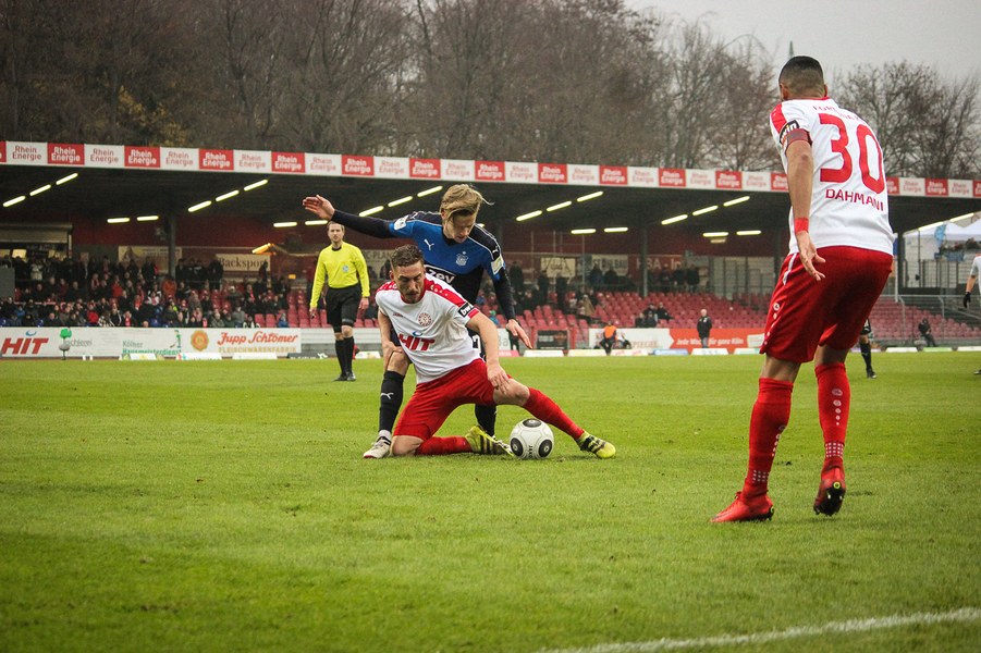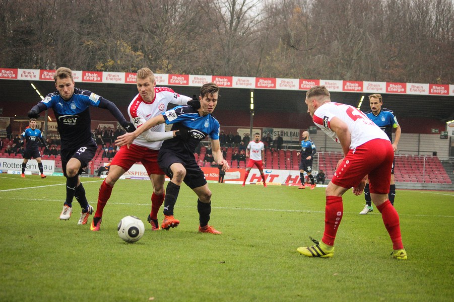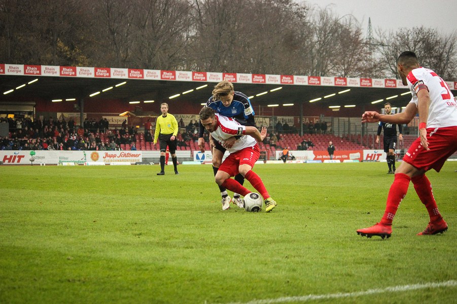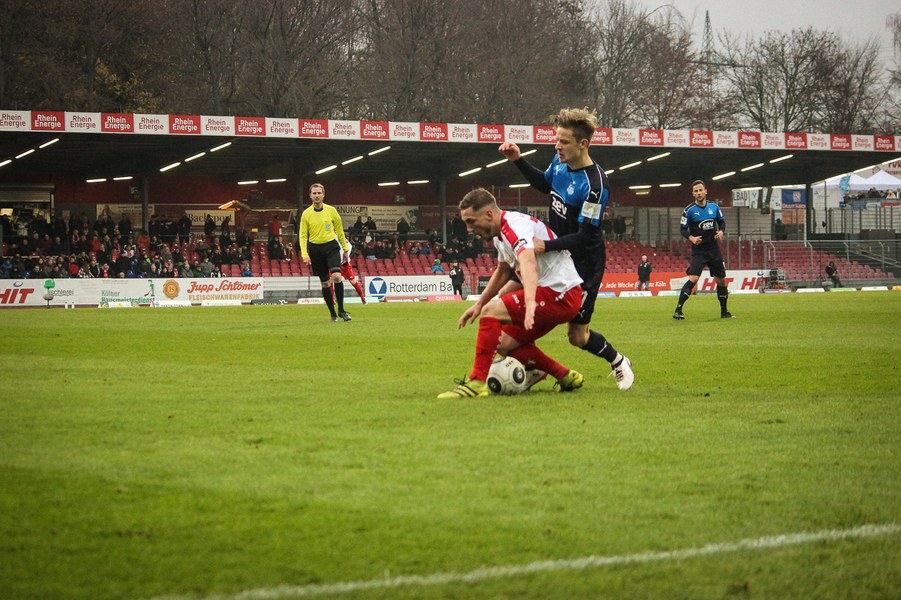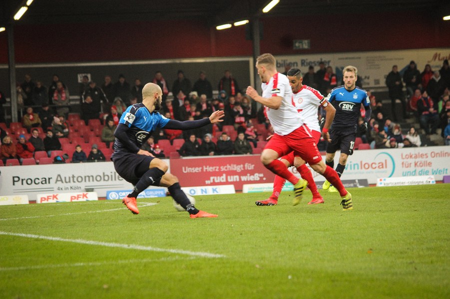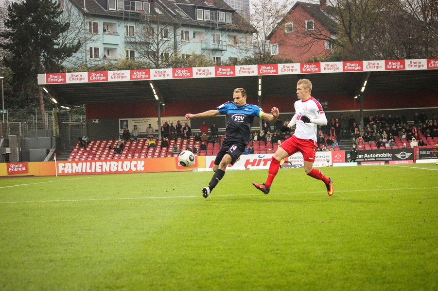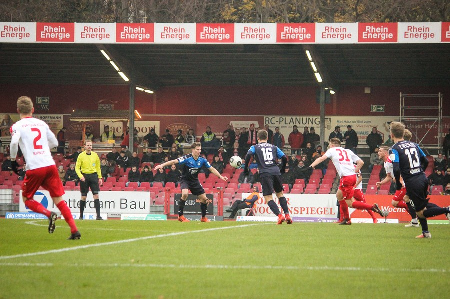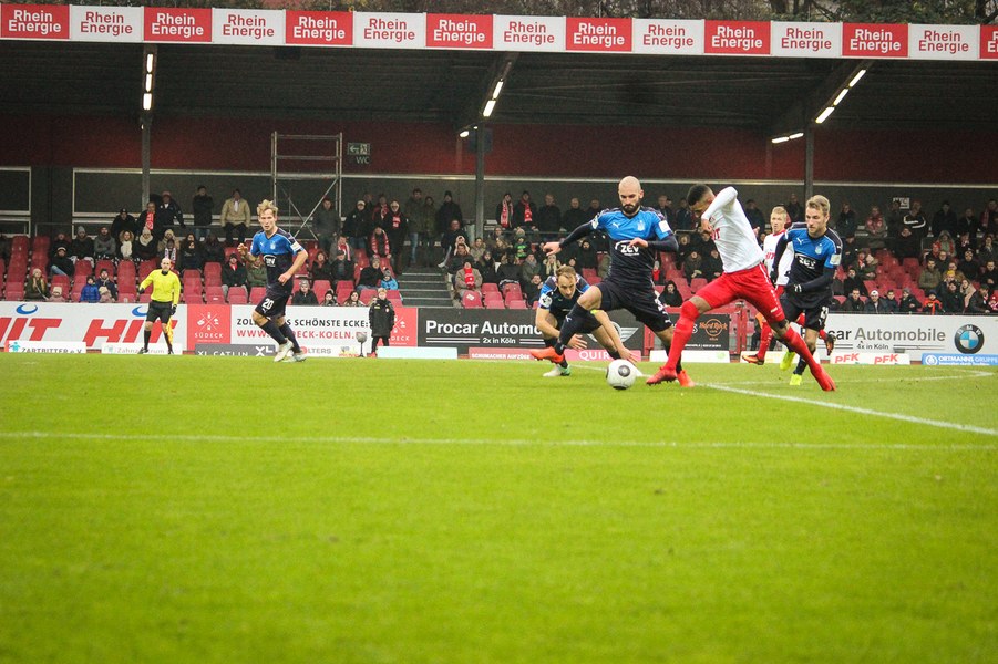 Das Spiel begann zunächst schleppend. Bis auf Distanzschüsse von Kessel und Garbuschweski passierte offensiv zunächst wenig (2./4.). Beiden Teams waren die Negativerlebnisse der letzten Wochen anzumerken. So wollte man zunächst Sicherheit in seine Aktionen bekommen. Die Folge waren viele Aktionen zwischen den Strafräumen mit wenig ansehnlichen Kombinationen. Erst Mitte der ersten Halbzeit meldet sich die Fortuna spielersich an, als Kegel auf Scheu ablegte und der Brinkies zur Parade zwang (22.). Die neugeformte Kölner Viererkette um Ernst, Bender, Theisen und Röcker zeigte sich defensiv gegen Zwickaus König zumindest sattelfest. Nach einem Konter über Röcker und Keita-Ruel erarbeiteten sich die Südstädter über einen Kegel-Abschluss ein leichtes Chancenplus (30.). Schließlich schnupperte Theisen an der Fortuna-Führung, als er beinahe einen Kegel-Freistoß mit der Brust über die Linie bugsierte (32.). Schließlich belohnte Scheu eine stärker werdende Fortuna mit der Führung, als er nach cleverem Zuspiel von Kegel überlegt ins lange Eck einschob (36.). Kurz darauf verpasste der Mittelfeldakteur seinen Doppelpack, als er frei vor Brinkies nach einem Konter am Zwickau-Keeper scheiterte (42.). Auf der Gegenseite musste Boss kurz vor dem Pausentee sein ganzes Können aufbieten, als er dreimal in höchster Not gegen König und Kollegen parieren konnte (45.).
