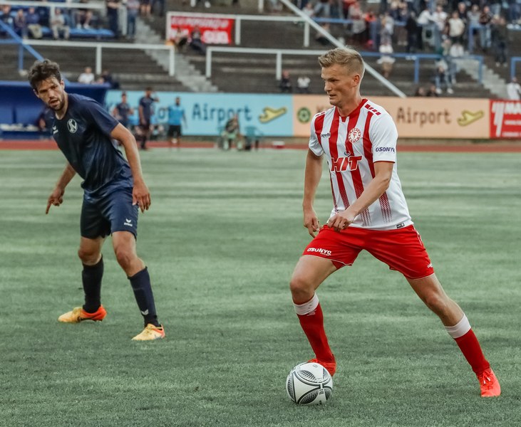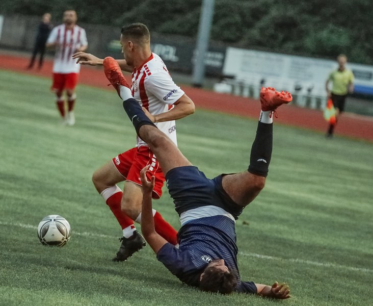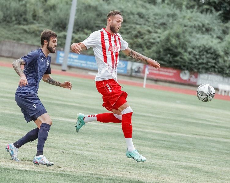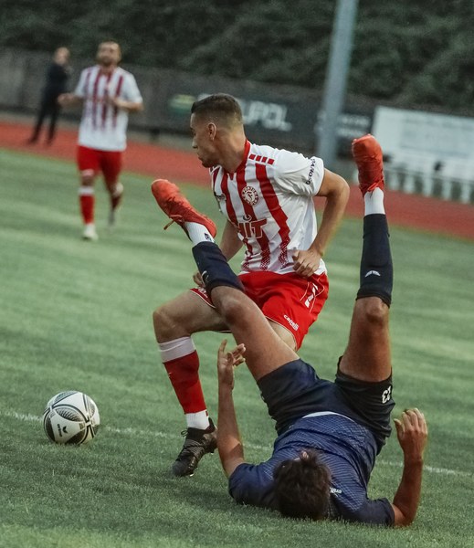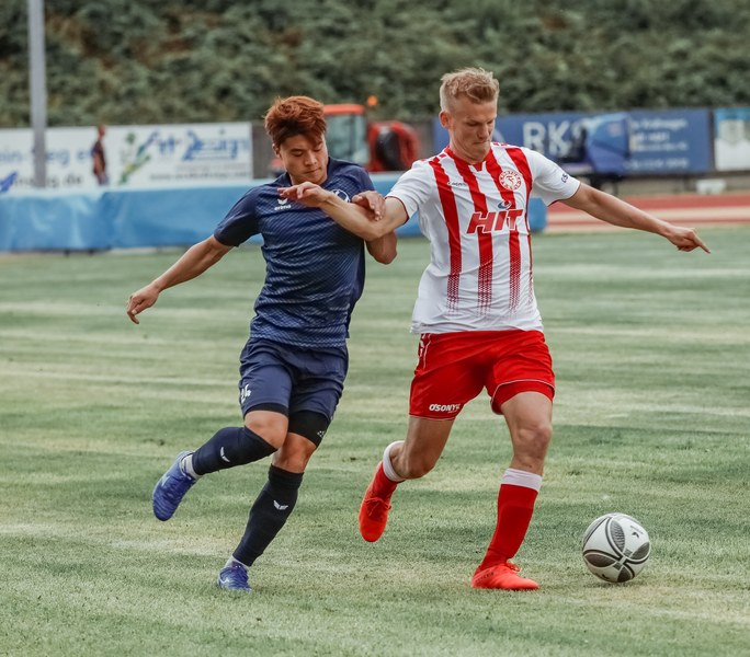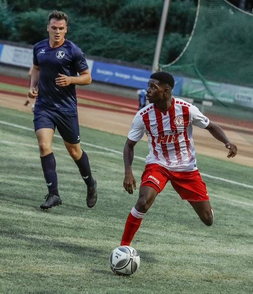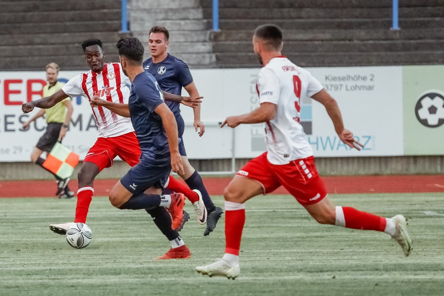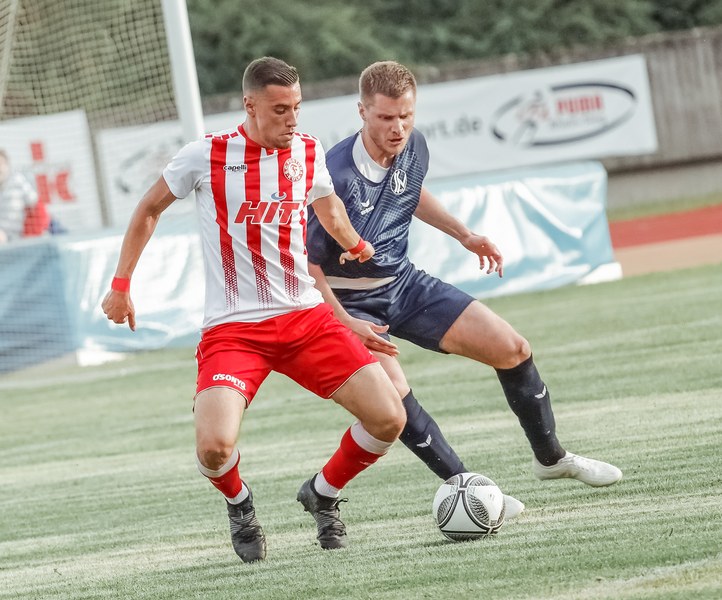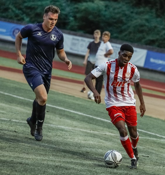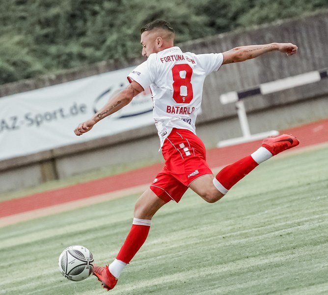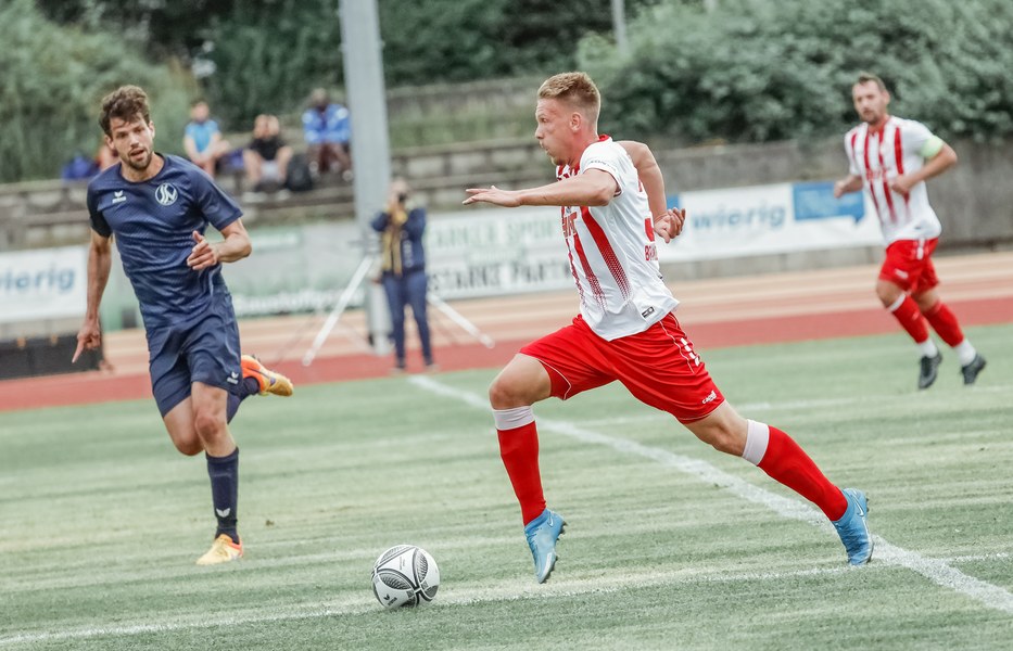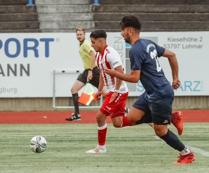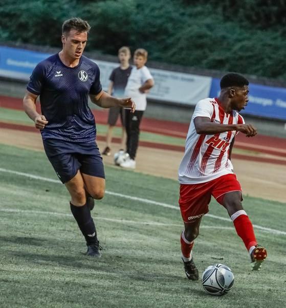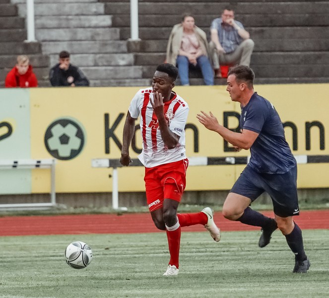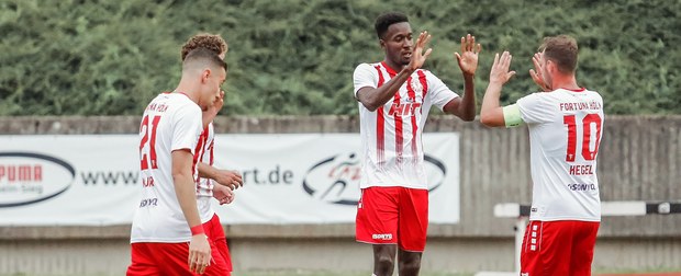 Die Gastgeber starteten mit einem frühen Pressing und setzten so die Fortuna Defensive frühzeitig unter Druck. Eine erste Torannäherung für die Fortuna erfolgte durch den Schuss von Sascha Marquet (7.Min) In der 11. Minute gelang den Südstädtern dann der Führungstreffer. Ein Einwurf auf Höhe der Eckfahne von Dan-Patrick Poggenberg segelte durch den Strafraum der Siegburger und Mike Owusu drückte den Ball über die Linie. Die Siegburger ließen sich von der Führung nicht beirren und spielten weiter mutig nach vorne. Nach einer guten Viertelstunde waren die rot-weißen im Glück. Über die rechte Angriff Seite der Hausherren kam der Ball flach in den Fortuna Sechzehner. Auf Höhe des Elfmeterpunktes kam ein Siegburger Angreifer im Duell gegen Pascal Itter zu Fall und forderte einen Elfmeter. Der Pfiff blieb jedoch aus. Doch damit war die Situation nicht erledigt. Aus dem Rückraum kam ein weiterer Siegburger an den Ball und zum Schuss. Aufgrund verdeckter Sicht wäre der Fortuna Schlussmann Felix Buer machtlos gewesen, hatte jedoch Glück und der Ball landete am rechten Pfosten. Einige Minuten später schickte Brandenburger den in Richtung Tor startenden Najar mit einem Steilpass, welcher den Torhüter mit einer Ballrolle aussteigen ließ und den Ball zum 2:0 im Siegburger Tor versenkte (25.Min). Die Fortuna schnürte die Gäste immer weiter in ihrer Hälfte ein und ließ den Siegburgern nur wenig Platz für eigene Angriffe. Dies war auch der hoch aufrückenden Hintermannschaft der Fortuna zuzuschreiben. Das Aufrücken brachte jedoch auch Risiken mit sich, da die Siegburger mit schnellen Kontern, insbesondere nach gegnerischen Ecken für einzelne Ausrufezeichen sorgten, die jedoch wie in der 28. Minute geklärt werden konnten. Nach 30 Minuten hatte Sascha Marquet die Möglichkeit auf 3:0 zu erhöhen, doch der Ball versprang ihm und landete über dem Kasten des Siegburger Schlussmannes. Mit dem 2:0 ging es auch in die Pause, in der Alexander Ende fünf Mal wechselte. Harnafi, Demaj, Ubabuike, Nadjombe und Fünger ersetzten Najar, Batarilo, Lanius, Marquet und Kegel.