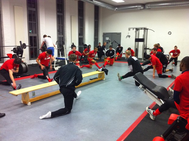 Gleich beim ersten Training des neuen Jahres musste das Trainerteam um Matthias Mink improvisieren. Das Flutlicht der Ostkampfbahn versagte seinen Dienst, so dass die Spieler eine Kräftigungseinheit, unter der Leitung von Physiotherapeut Christian Osebold, absolvierten. Zuvor stand aber das obligatorische Wiegen auf dem Programm - hier wurde schonungslos aufgedeckt, wer sich an die Vorgaben gehalten hatte. Einsamer Spitzenreiter dabei Kevin Kruth, der mit mehr als 4 Kilogramm Gewichtsreduzierung aus dem Weihnachtsurlaub zurückkehrte. Aber auch die Ergebnisse der anderen Spieler ließen eindrücklich erkennen, dass alle den Trainingsplan eingehalten hatten. Erstmals mit dabei übrigens Torwart Daniel Riemer, der schon eine neue Bleibe in Köln gefunden hat. Nassirou Ouro-Akpo und Kapitän Stephan Glaser stoßen erst heute zum Team - Trainer Matthias Mink gewährte beiden eine eintägige Urlaubsverlängerung.