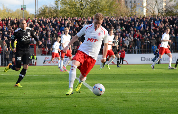 Die Fortuna gewinnt das Spitzenspiel des 16. Spieltags in der Regionalliga West gegen Viktoria Köln mit 4:2 (1:2). Dabei drehte das Team von Trainer Uwe Koschinat einen 0:2-Rückstand noch in einen viel umjubelten Derbysieg. Zunächst besorgten Müller (16. Min) und Candan (29. Min) die nicht unverdiente Führung für die Elf von Claus-Dieter Wollitz. Mit dem Anschlusstreffer vor der Pause sorgte Ercan Aydogmus aber wieder für Leben bei der Fortuna (41. Min). Im zweiten Spielabschnitt präsentierte sich das Team aus der Südstadt wie ausgewechselt und belohnte sich durch Steffen mit dem verdienten Ausgleichstreffer für den großen Aufwand, den sie betrieb (59. Min). Der Führungstreffer von Flottmann nach einer Ecke sorgte im mit 6.460 Zuschauern prall gefüllten Südstadion schließlich für grenzenlosen Jubel (78. Min). Das zweite Tor von Ercan Aydogmus besiegelte schließlich diesen viel umjubelten Derbysieg für die Fortuna (83. Min).
