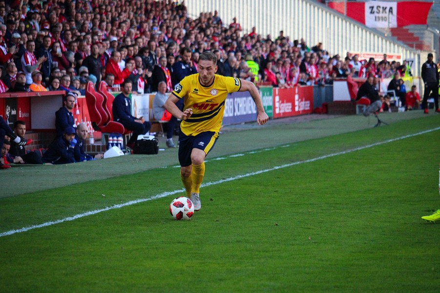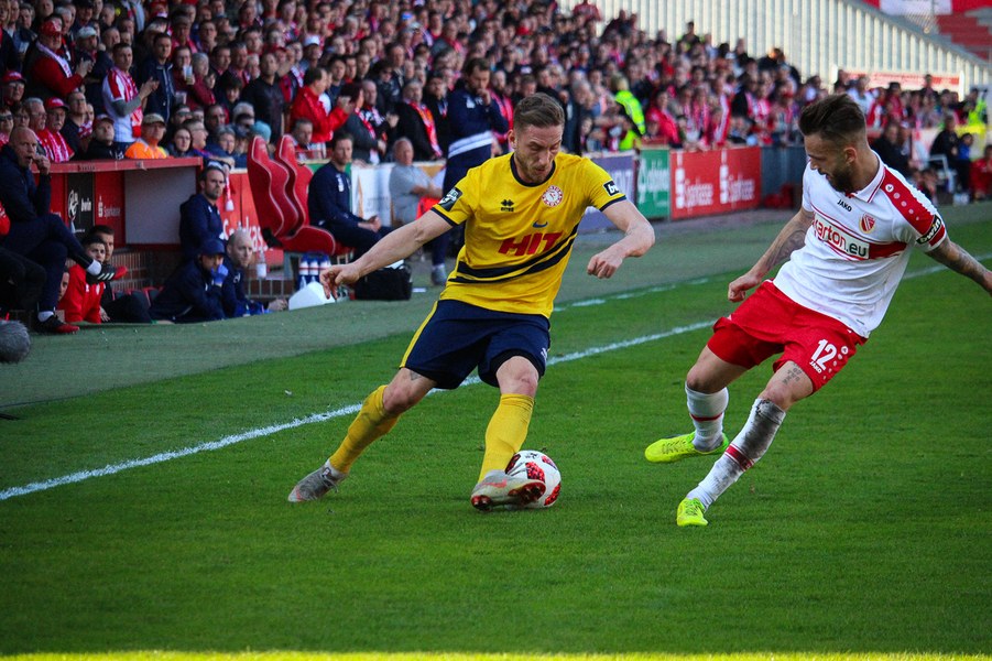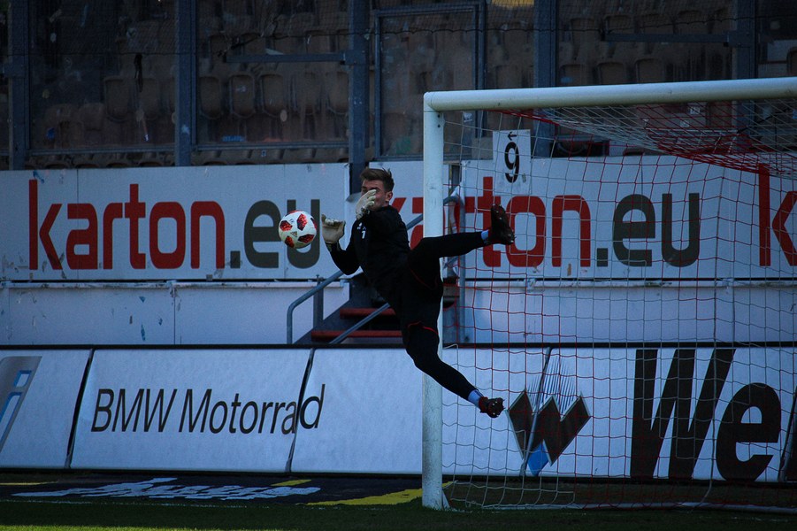 Nach rund einer halben Stunde erhöhte Fortuna wieder den Druck. Nach einer Ecke von Eberwein in der 36. Minute verfehlten Freund und Feind im Strafraum, da war mehr drin! Vier Minuten später zeigte Schiedsrichter Florian Heft wieder auf den Punkt – diesmal für die Fortuna: Torhüter Rauhut foulte Okan Kurt und Fritz verwandelte den fälligen Foulelfmeter links sicher. 2:2 – damit ging es in die Pause.