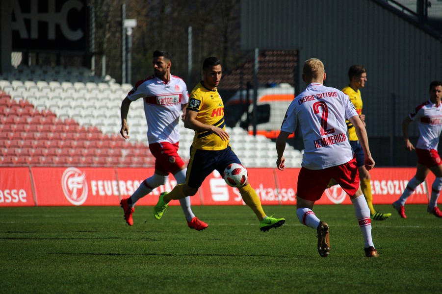 Trainer Tomasz Kaczmarek musste die Mannschaft für das Spiel in Cottbus auf verschiedenen Positionen umstellen. In der Abwehr begann Sebastian Schiek auf der linken Seite für den mit Rückenproblemen kurzfristig ausgefallenen Thomas Bröker. Moritz Fritz rückte für den gelbgesperrten Nico Brandenburger ins Mittelfeld. Ali Ceylan begann auf der linken Seite für den in die Abwehr gerückten Schiek. Im Sturm setzte Kaczmarek zunächst auf Hamdi Dahmani und Robin Scheu.
