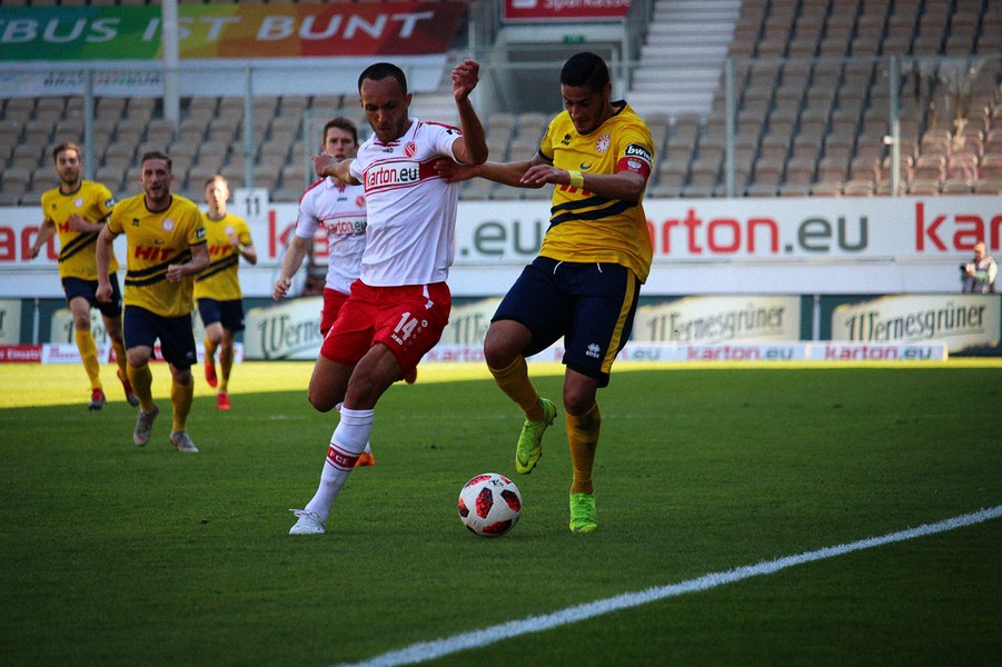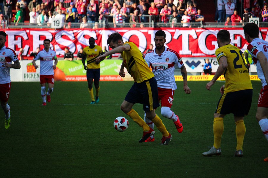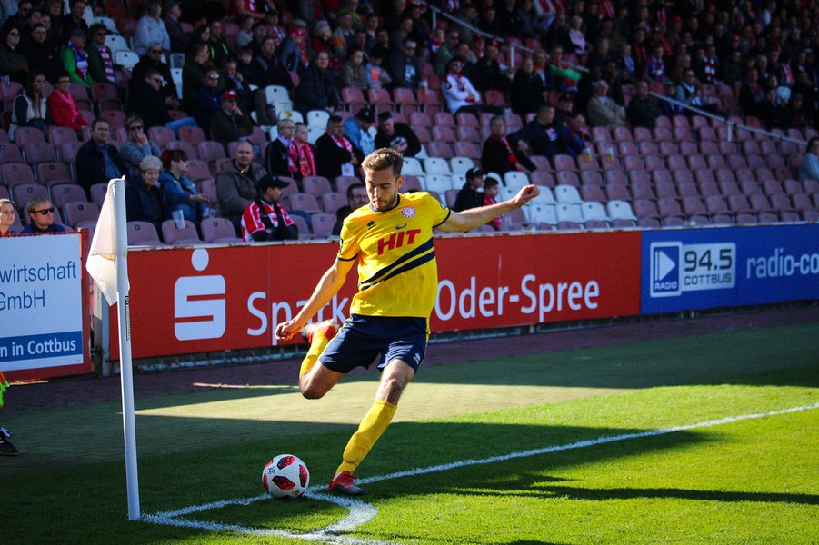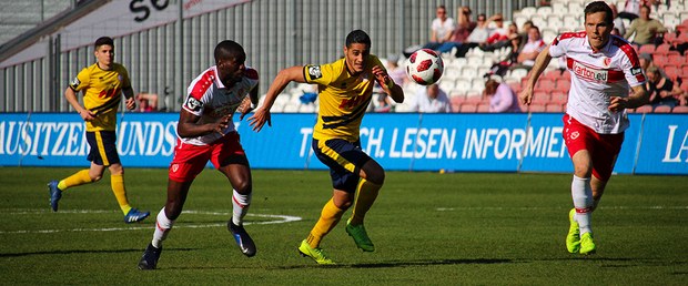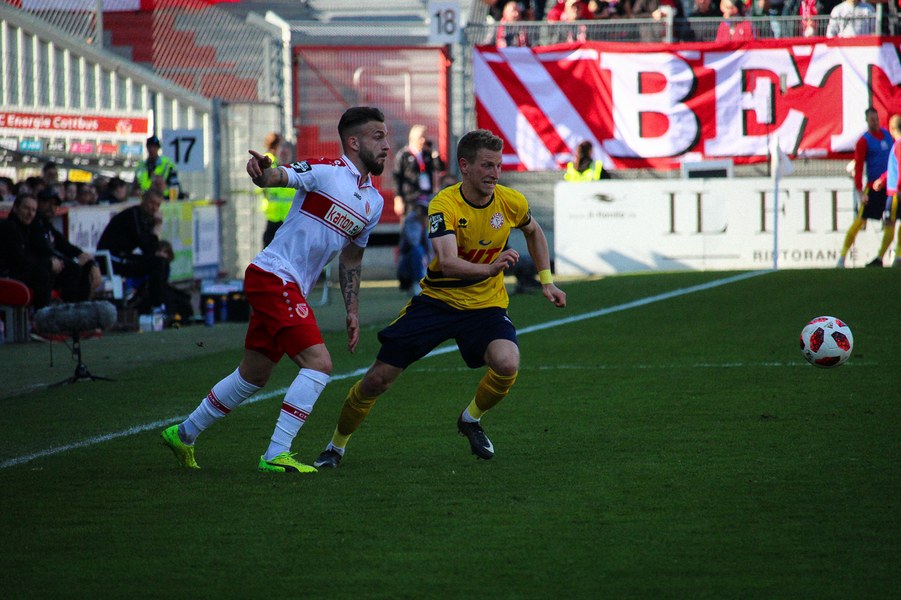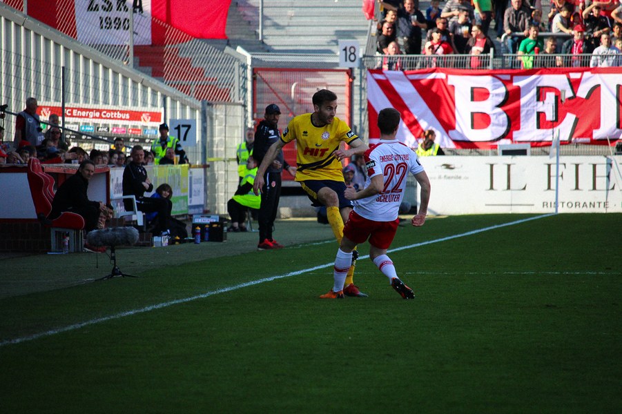 Den Südstädtern steckten zwar eine lange Anreise und das Landespokalspiel unter der Woche in den Knochen, doch davon war in der Anfangsphase nichts zu spüren. In der siebten Minute gab es nach vermeintlichem Foul von Dominik Ernst aber Elfmeter für den FC Energie Cottbus. Jürgen Gjasula versenkte den Strafstoß sicher oben rechts im Tor von Nikolai Rehnen.