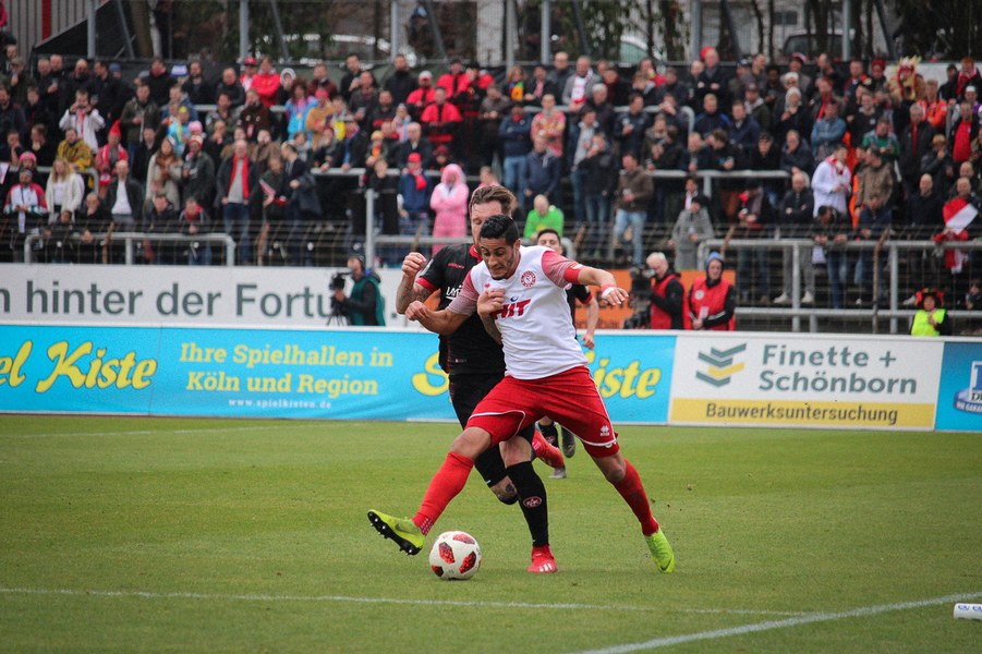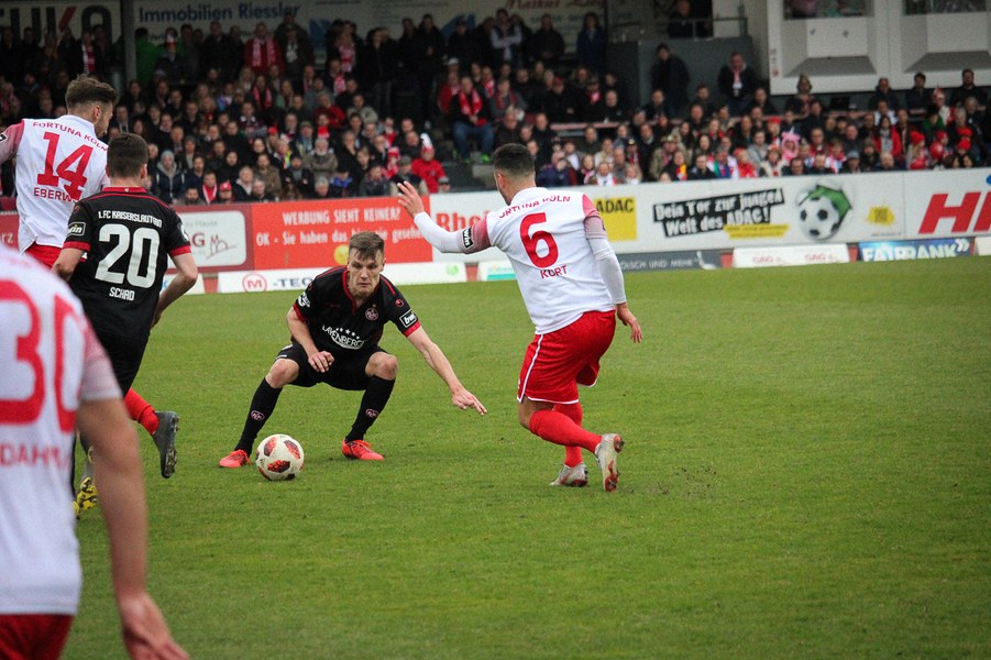 Karnevalssamstag, offene Südkurve, 8.379 Zuschauer und Traditionsverein Kaiserslautern zu Gast: Im Südstadion war alles angerichtet für das Fortuna Karnevalsspill. Trainer Tomasz Kaczmarek stellte seine Elf im Vergleich zum Auswärtsspiel bei Carl Zeiss Jena auf zwei Positionen um: Kristoffer Andersen ersetzte den Gelb gesperrten Maik Kegel und Boné Uaferro rückte zurück in die Dreier-Abwehrkette.