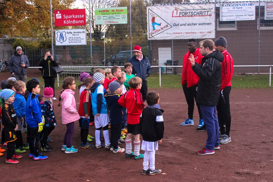 Die Länderspielpause wurde von der Fortuna genutzt, um den kleineren Fans eine Freude zu machen. Die E- und F-Jugend von Arminia 09 Köln durften gestern mit den drei Fortunen Jannik Bruhns, Cédric Mimbala und Daniel Keita-Ruel trainieren. Neben einem Trainingsspiel stand auch noch eine Übung zur Ballkontrolle und eine weitere zum Torabschluss an, die von Stürmer Daniel Keita-Ruel geleitet wurde.