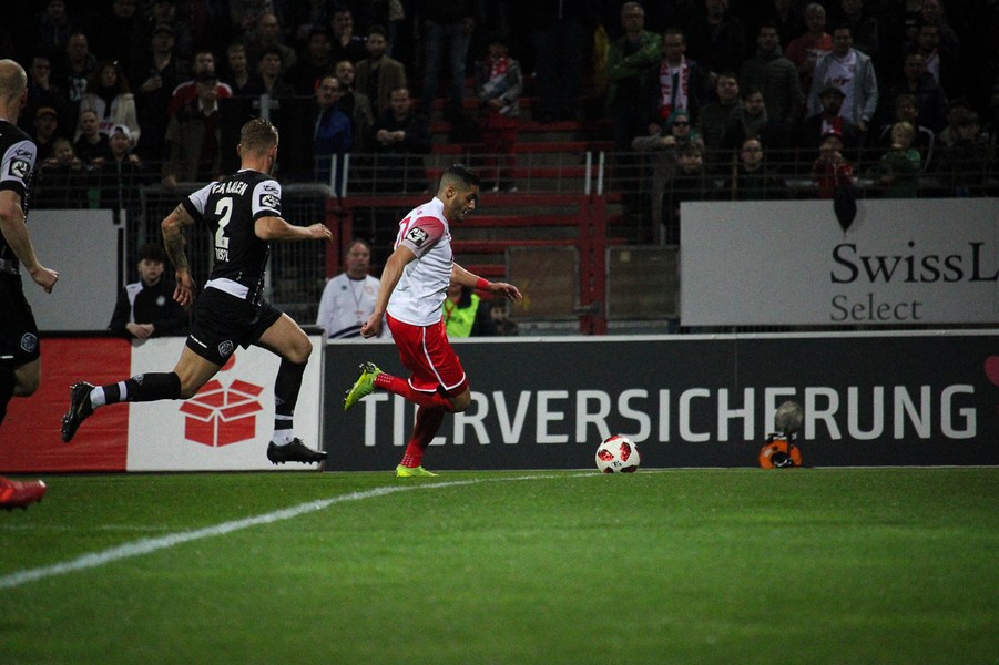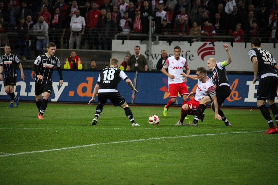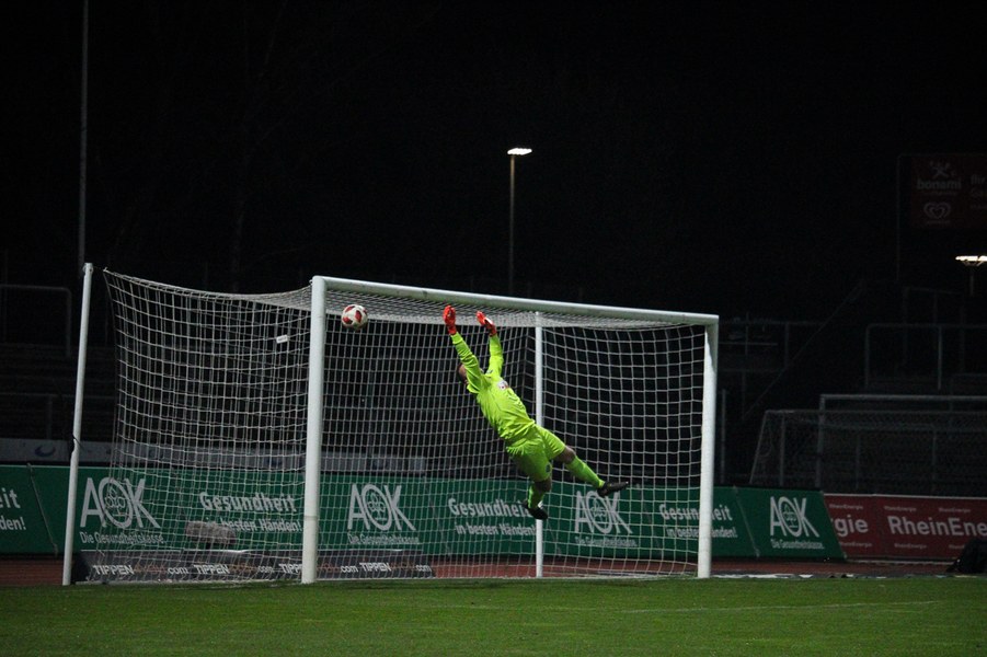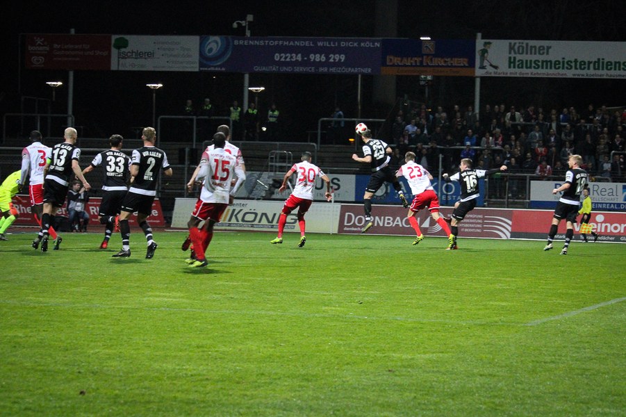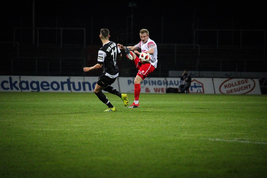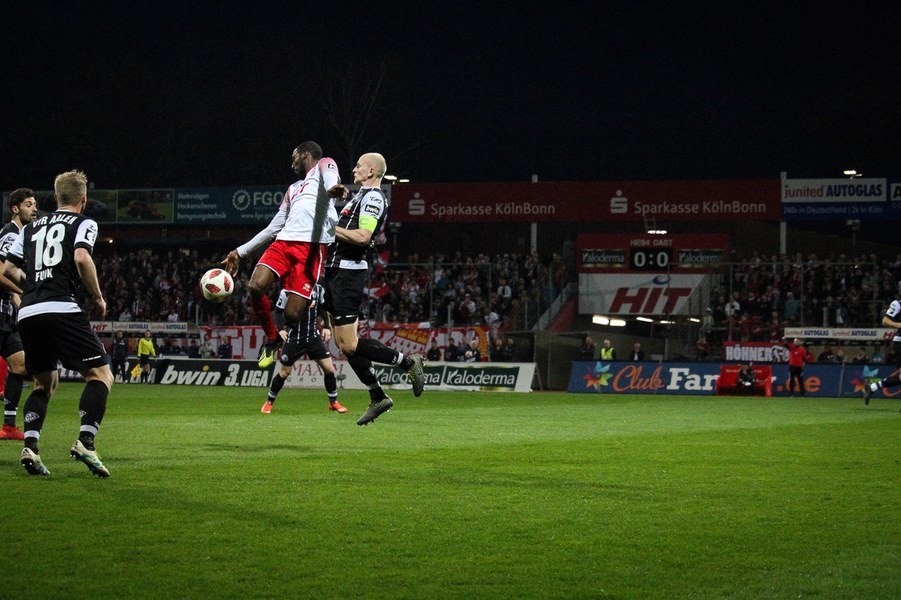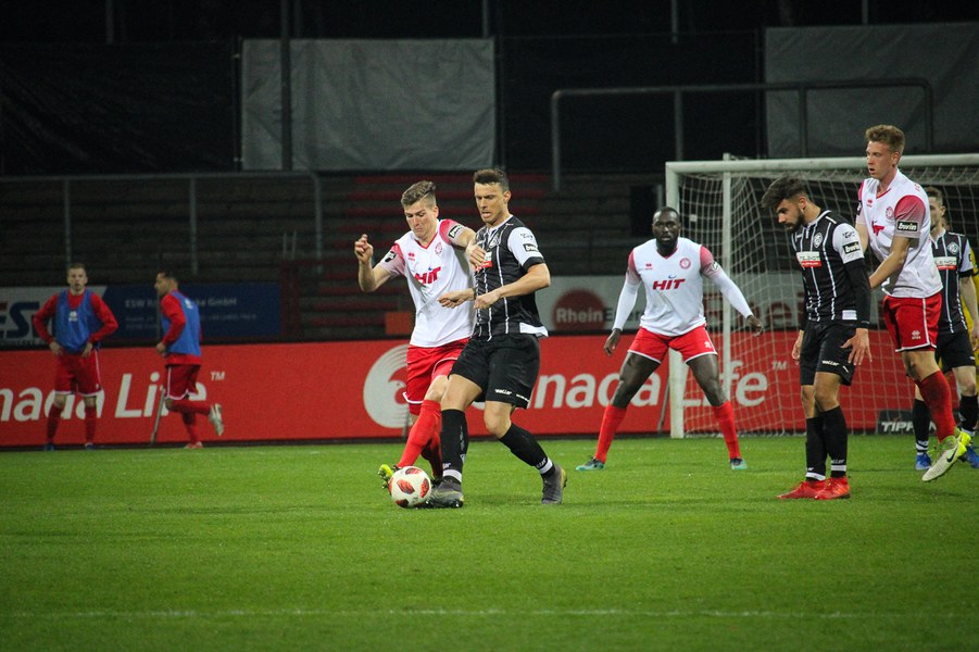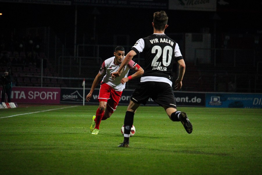 Die Bedeutung des Spiels war den Aktionen von der ersten Minute an anzumerken. Beide Teams agierten erst einmal sehr kontrolliert. Damit waren klare Möglichkeiten am Anfang Mangelware. Nach zehn Minuten sicherte sich Fortuna Köln mehr Spielanteile. Doch nach Foul von Robin Scheu bekam Aalen in der 19. Minute eine gute Freistoßchance. Nikolai Rehnen parierte den Linksschuss von Nicolas Sessa aus 28 Metern mit beiden Händen. Fünf Minuten später war es Stephan Andrist, der aus aussichtsreicher Position am Kölner Keeper scheiterte. Auch in der 30. Minute bewahrte Rehnen die Fortuna vor einem Rückstand. Ein Kopfball von Andrist nur 60 Sekunden später ging zum Glück der Südstädter ebenfalls knapp am Tor vorbei. Ein Schuss von Antonios Papadopoulos aus 16 Metern landete ebenso über dem Tor (36.).