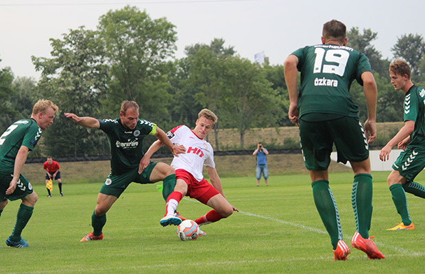 Bei warmen Temperaturen verliert die Fortuna in einem kräftezehrenden Test gegen Rot-Weiß Oberhausen mit 0:1. Dabei kassierte die Koschinat-Elf das Gegentor unmittelbar vor dem Spielende. Zuvor zeigte sich der Drittligist besonders im ersten Abschnitt dominant gegenüber dem Regionalligisten, auch wenn die gut 200 Zuschauer auf dem Trainingsgelände am Niederrheinstadion aussichtsreiche Chancen auf beiden Seiten zu sehen bekamen.