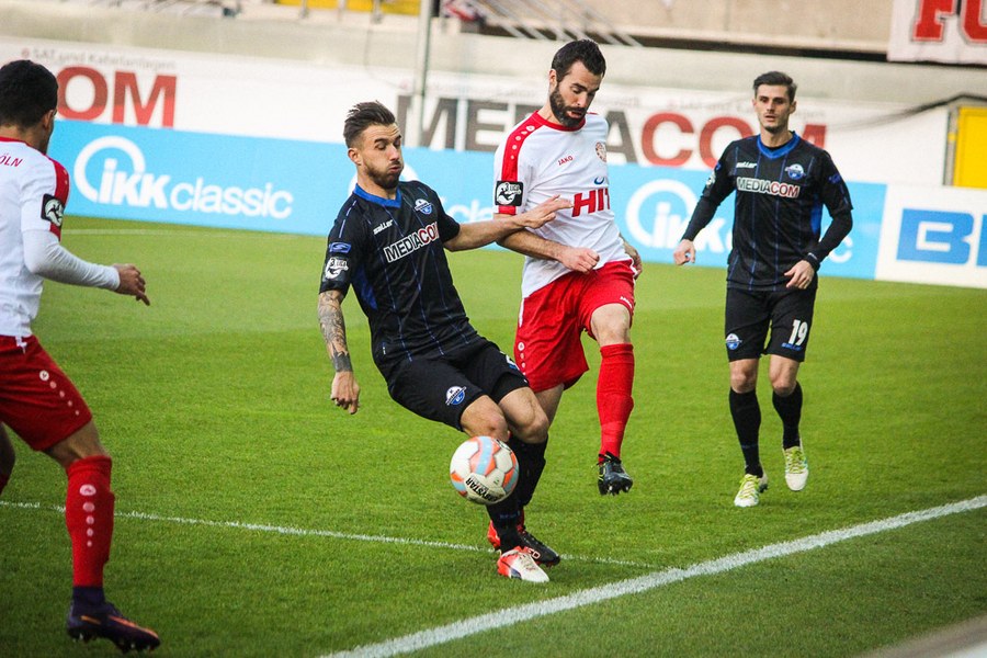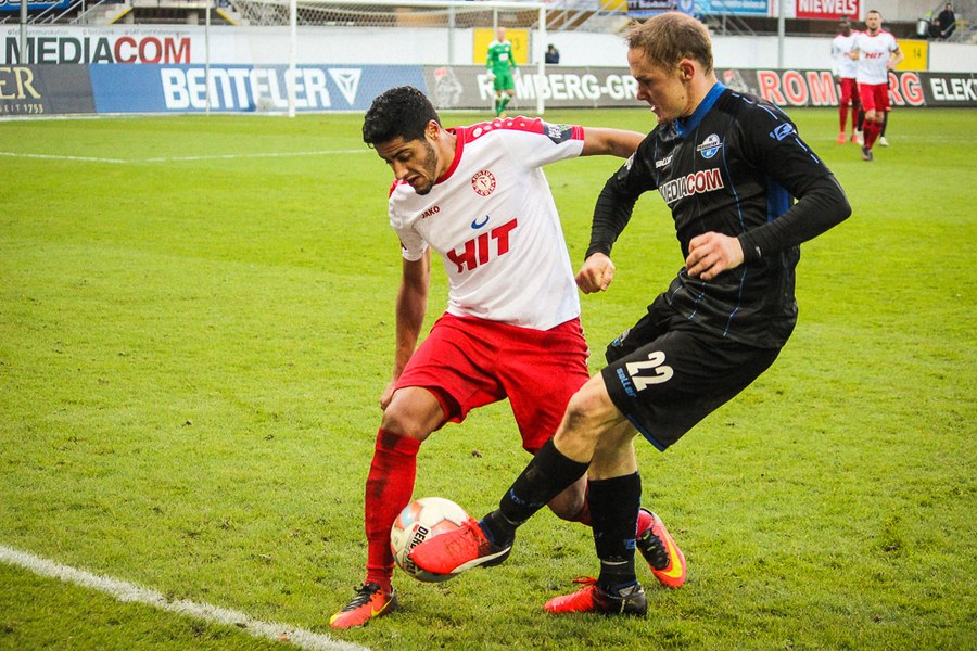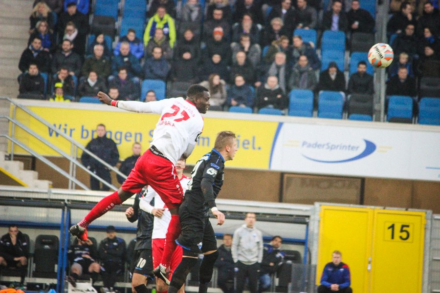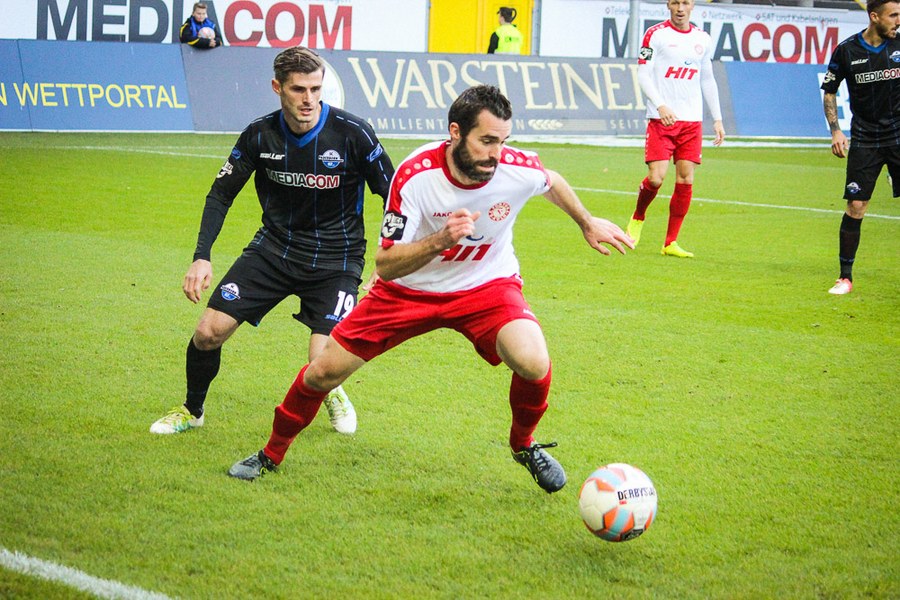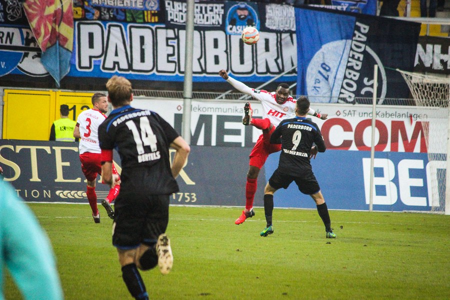 Die Südstädter kontrollierten mit der Führung im Rücken die Partie, auch weil Paderborn die Fortuna vor keine großen Probleme stellte. So versuchte wieder Dahmani mit einer Bogenlampe aus der Distanz, Kruse zu überraschen (30.). Aus dem Nichts hatte Paderborn dann aber die Chance zum Ausgleich, als Michel auf links entwischte. Seinen Querpass konnte Vucinovic aber gegen Poggenborg nicht vollenden (32.). Plötzlich lebten die Gastgeber aber wieder und hatten über Vucinovic und van der Biezen weitere Abschlüsse (37./40.). Nach einer Eckenserie verüasste schließlich Bertels im Gestocher den Ausgleich (41.). Die Souveränität der Fortuna war nun weg. Man brachte die Führung aber in die Kabine, bei Pfiffen der Paderborn-Fans.