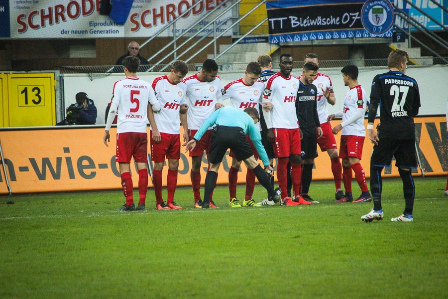 Die Gastgeber nahmen den Schwung aus dem Ende der ersten Halbzeit aber mit: Nach einem Konter musste Poggenborg so vor Michel klären (51.). Die Westfalen wollten sich hier nicht kampflos geschlagen geben und zwangen die Fortuna nun mehr in den Rückwärtsgang. Die Fortuna schaffte es aber, den Gästen den Spielfluß zu nehmen. So passierte lange wenig, auch weil die Fortuna ihre Konter nicht mit der letzten Konsequenz zu Ende bekam. So fand Dahmani von der Grundlinie aus keinen Abnehmer (68.). Paderborn tat sich aber weiter schwer, Chancen zu erspielen. Erst nach einer direkten Ecke musste Poggenborg eingreifen (72.). Kurz darauf prüfte der eingewechselte Dedic den Fortuna-Schlussmann (77.). Die Fortuna fokussierte sich nun mit aller Kraft auf die Defensive, um in der englischen Woche den dritten Sieg mitzunehmen. Aus dem Nichts dann aber der Ausgleich: Eine scharfe Hereingabe von Bickel brachte Dedic im Kölner Tor untr (86.). Die Fortuna hatte aber die erneute Führung auf dem Fuß: Einen Querpasss von Souza bugsierte Bender aus kurzer Distanz das Tor (87.). Am Ende blieb es beim Remis, auch wenn Theisen mit gelb-rot nach wiederholtem Foul vom Platz musste.