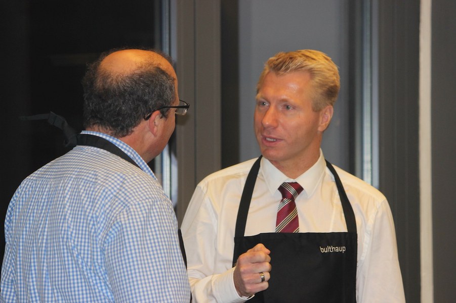 Neben dem Kochen stand vor allem der Kontakt zwischen den Partnern im Vordergrund: Während sich die Männer beim gemeinsamen Kochen näher kennenlernten, durften sich deren Begleitungen bei Sekt und Wein zurücklehnen. Anschließend wurde das fertige Menü gemeinsam genossen. „Wir möchten unseren Partnern mit solchen Abenden die Möglichkeit bieten, miteinander in Kontakt zu treten und sich immer weiter und besser zu vernetzen. Herr Vianden hat uns mit „bulthaup am Mediapark“ den perfekten Rahmen dafür geboten. Das war ein hochklassiger Anfang und wir freuen uns auf die nächsten Partnerevents“, zeigte sich auch Benjamin Bruns mit dem Kochevent sehr zufrieden.