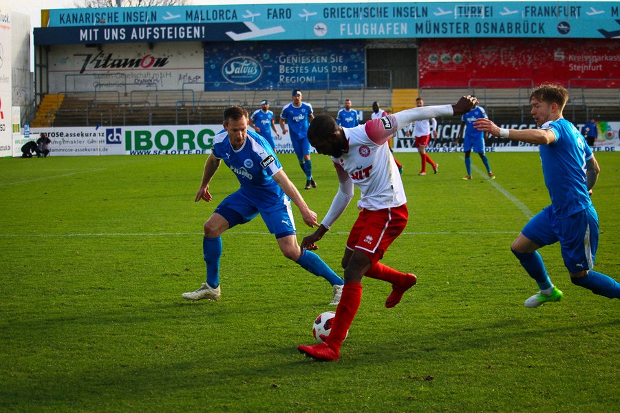 Lotte erwischte den besseren Start. Maximilian Oesterhelweg verfehlte mit seinem Flachschuss in der dritten Minute allerdings das Tor der Gäste. Durchatmen bei den Südstädtern dann vier Minuten später: Nikolai Rehnen hielt einen Schuss von Toni Jovic nicht fest. Aber selbst den Nachschuss aus kurzer Distanz – wenn auch aus einer Abseitsposition – parierte er.