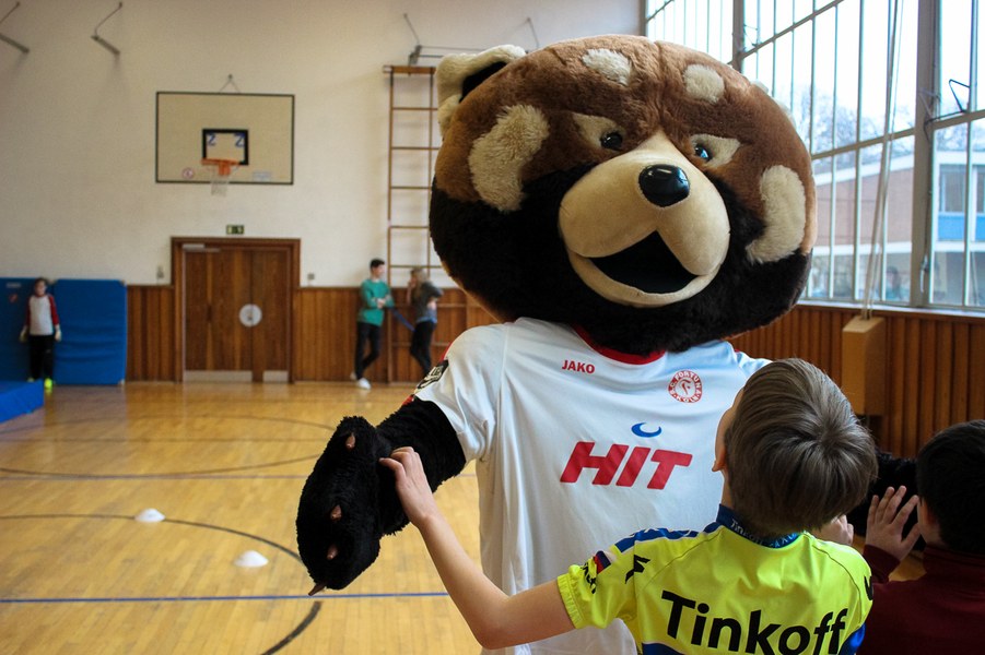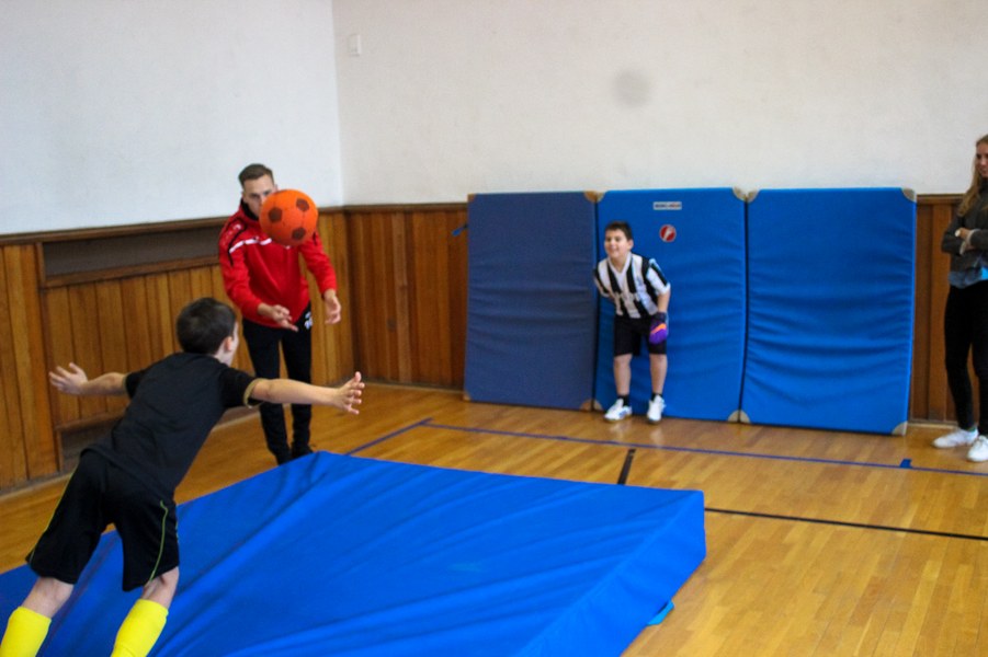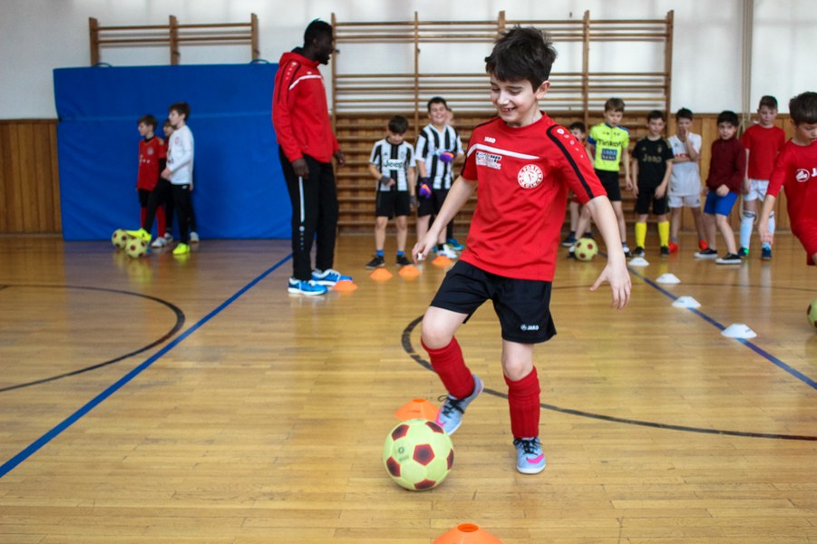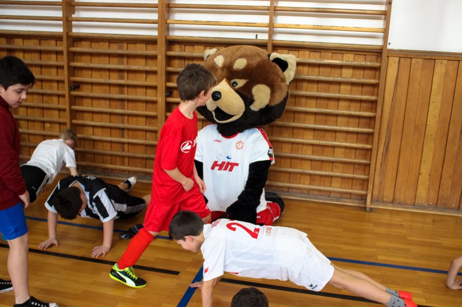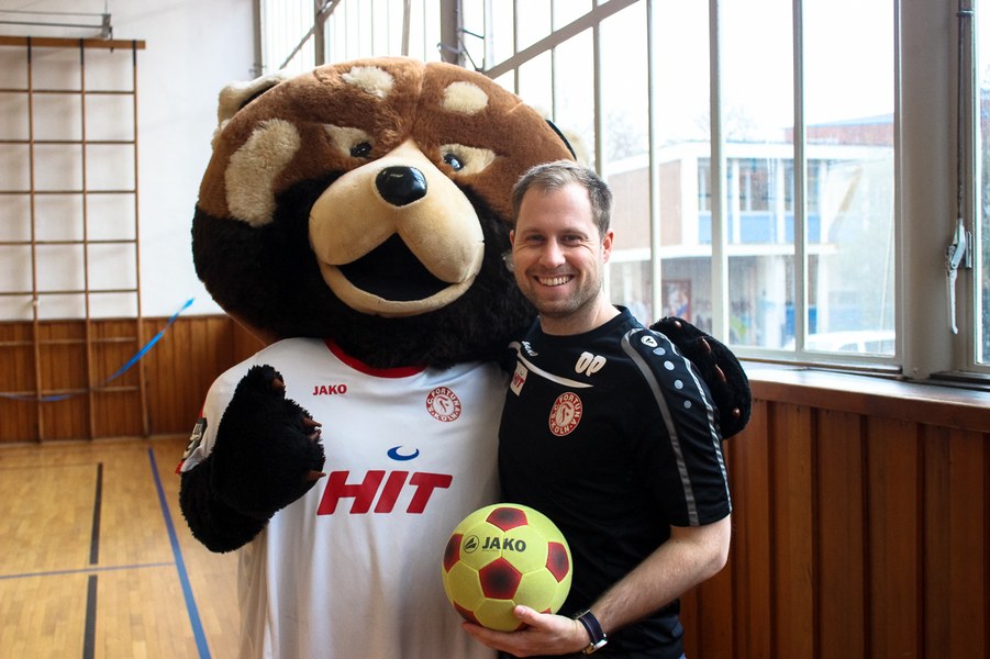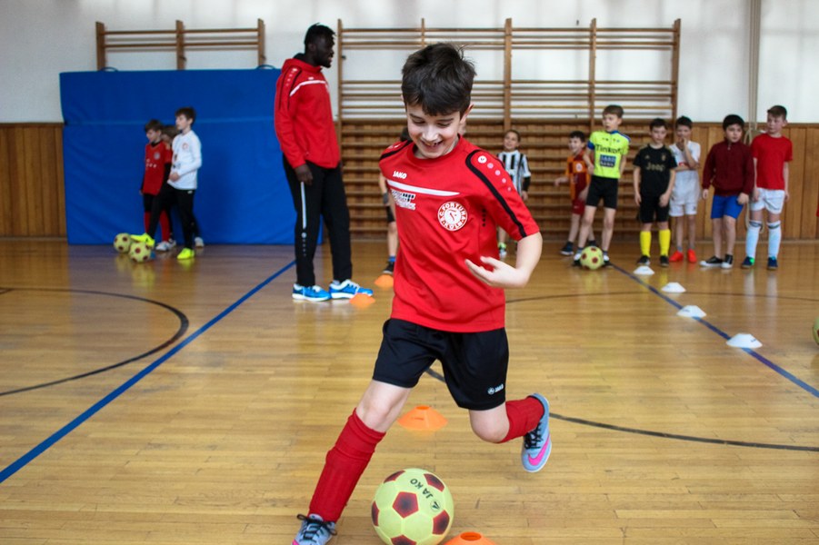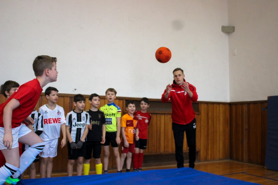 Wieder einmal ließ die Fortuna Kinderaugen strahlen. Es stand eine Schulaktion für die Fortuna-Profis an. Aus diesem Grund besuchten Lars Bender, Barnard Kyere und Christopher Theisen die Schüler der KGS Zugweg. Mit zwei Klassen stand als erstes das obligatorische Training an. Die drei Fortunen leiteten nicht nur die Einheit, sondern nahmen auch selbst daran teil. Insgesamt gab es drei verschiedene Übungen: Eine Schussübung, einen Hindernisparkour und eine Übung für Fallrückzieher sowie Flugkopfbälle. Die Klassen wurden immer in drei Gruppen aufgeteilt, die jeweils ein Profi begleitete.