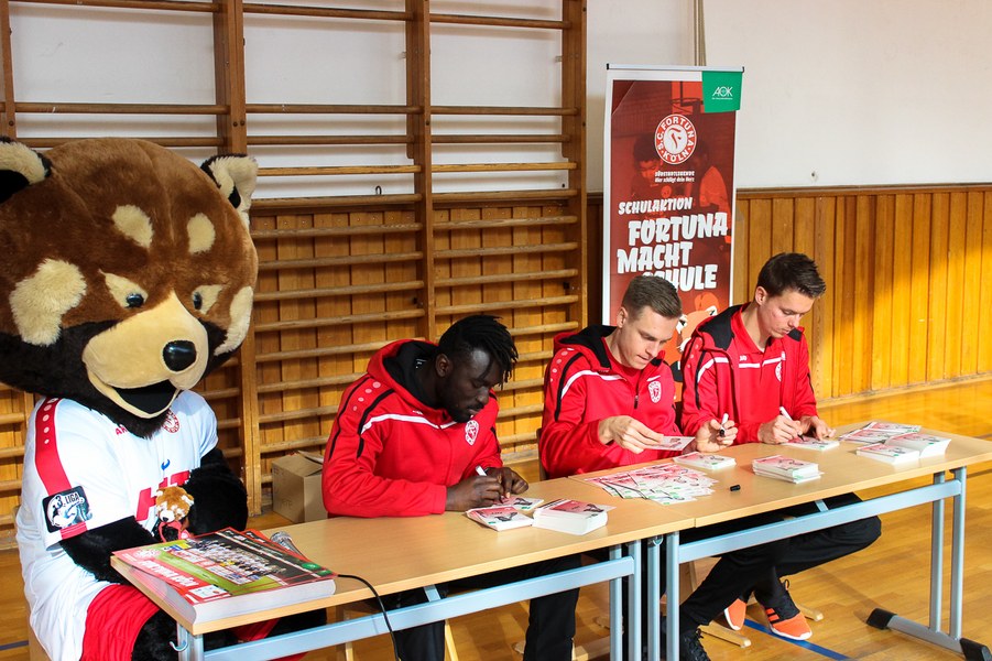Für die Fortuna war es schon der zweite Besuch der KGS Zugweg im Rahmen der Aktion Fortuna macht Schule.