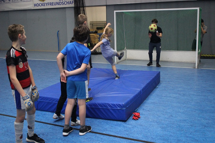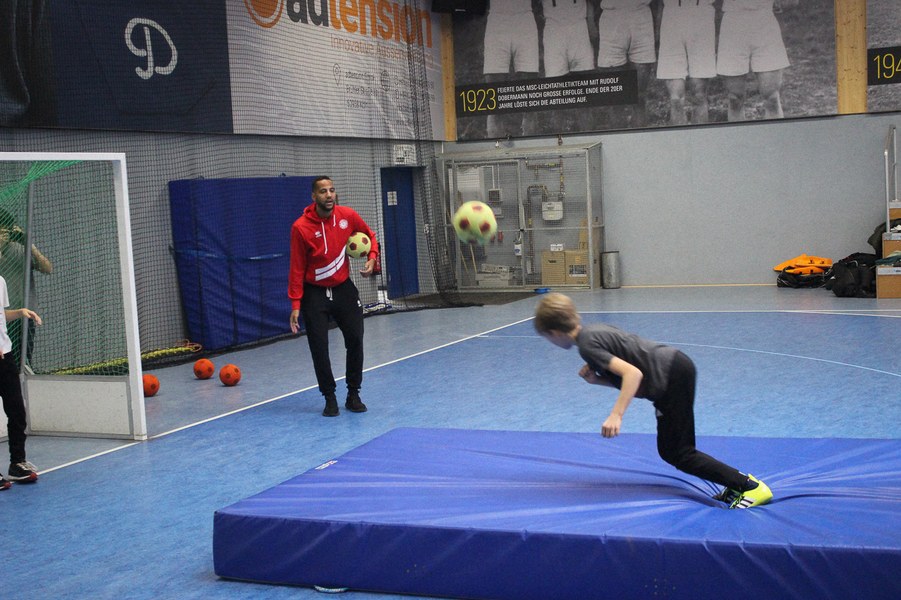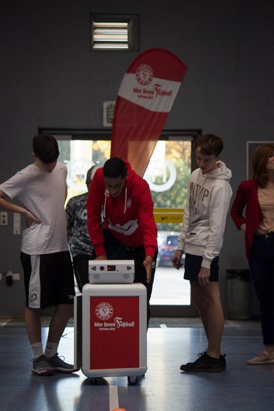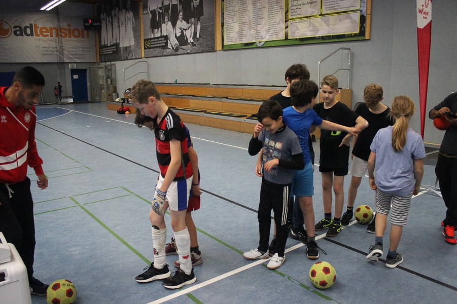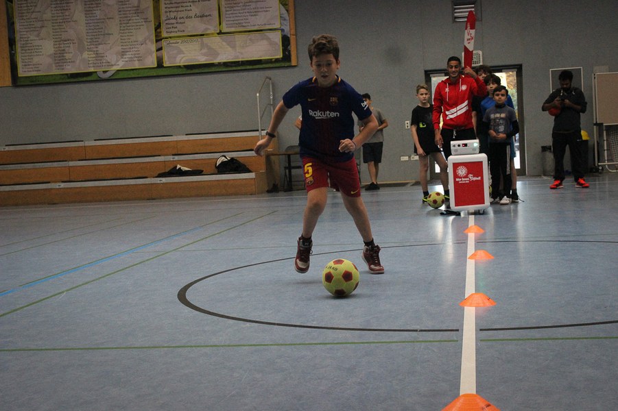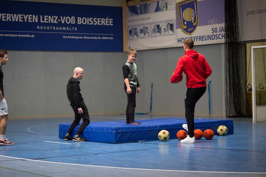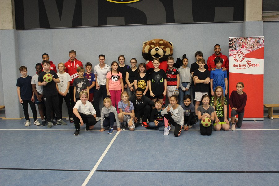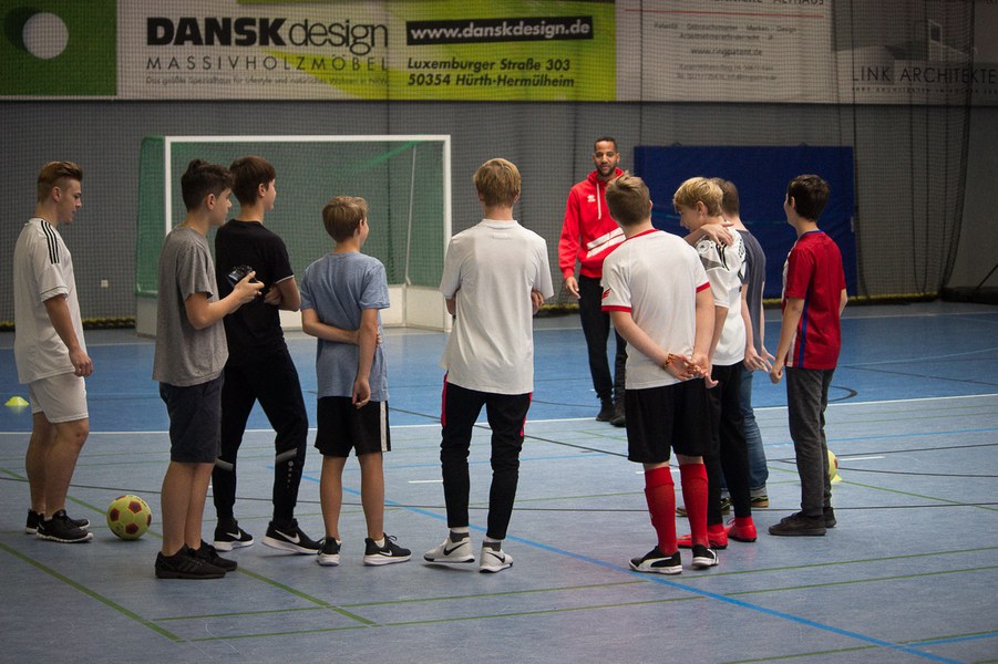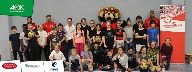 Das Programm an der weiterführenden Schule war in zwei Runden eingeteilt. Während mit den Klassen fünf bis sieben zunächst die Unterstufe an den Stationen Flugkopfball, Torabschluss und Dribbler-Station ihr Können unter Beweis stellen konnten, traten in der zweiten Runde die achte und die zehnte Klassen an. Unter den rund 60 Kindern, die unter der Leitung der drei Spieler in der Halle des Marienburger Sportclubs die Übungen absolvierten, waren auch Inklusionskinder. Eine Besonderheit der offenen Schule Köln, die alle Kinder, ob mit oder ohne Handicap, zusammenbringt. Nach der Einheit in der Halle ging es für alle Kinder zur Fragerunde mit anschließender Autogrammstunde.