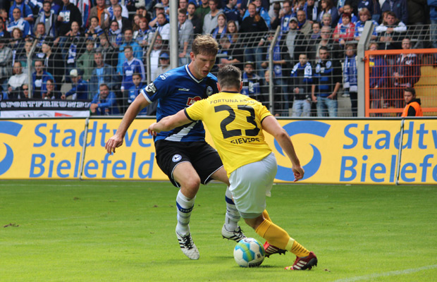Vor 8.544 Zuschauern verliert die Fortuna gegen Arminia Bielefeld verdient mit 0:2 (0:2). Dabei fehlte den Kölnern über die gesamte Spieldauer die Durchschlagskraft in der Offensive, um Bielefeld zu gefährden. Die Arminia nutzte hingegen den Schwung aus dem 4:1-Sieg im DFB-Pokal gegen Zweitligist Sandhausen: Vom Anpfiff weg agierte der DSC deutlich zielstrebiger als die Fortuna und konnte sich gleich mehrere Möglichkeiten erspielen. Mast brachte die Gastgeber schließlich folgerichtig in Front (13.). Die Fortuna fand nur selten zu ihrem Spiel. Einzig Rahn tauchte Mitte der Halbzeit mal gefährlich vor DSC-Keeper Schwolow auf, scheiterte aber aus spitzem Winkel. Kurz darauf brachte Klos die Arminia endgültig auf die Siegerstraße und erhöhte per Kopf auf 2:0 (27.).