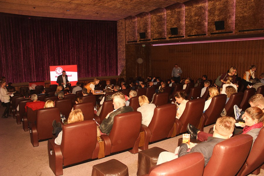 Empfangen wurden die Businesspartner mit einem Moseco und kölschen Häppchen im eindrucksvollen Eingangsbereich des Residenz, von dem es Richtung Kinosaal zur Vorstellung des neuen Fortuna-Partners und zum Trainerinterview ging. Theaterleiter Andreas Lünstroth stellte dabei dem Fortuna-Netzwerk das Residenz vor: Statt auf Popcorn und Nachos in den klassischen Kinostühlen können sich die Kinobesucher im Residenz auf gemütliche Sessel und Bedienung am Platz freuen. Bei einer Auswahl an Getränken wie Wein oder Kölsch und Speisen wie einer Käseplatte und Antipasti können alle Besucher einen besonderen Kinoabend genießen. Davon sollten sich die anwesenden Partner noch ein Bild machen können. Als Dank für den Event überreichten die Fortuna-Profis Steven Ruprecht und Moritz Hartmann dem neuen Partner einen Präsentkorb mit vielen Überraschungen aus dem Netzwerk. Anschließend stellte sich der neue Fortuna-Trainer Tomasz Kaczmarek im Gespräch mit Benjamin Bruns, Mitglied der Geschäftsleitung Fortuna Köln, im vollen Kinosaal dem Fortuna-Netzwerk vor. Nach der Talkrunde schauten alle Partner gemeinsam Mamma Mia II. Es wurde während des Films mitgesungen und gelacht, was Ausdruck für einen gelungenen Abend beim neuen Fortuna-Partner Residenz Kino war.