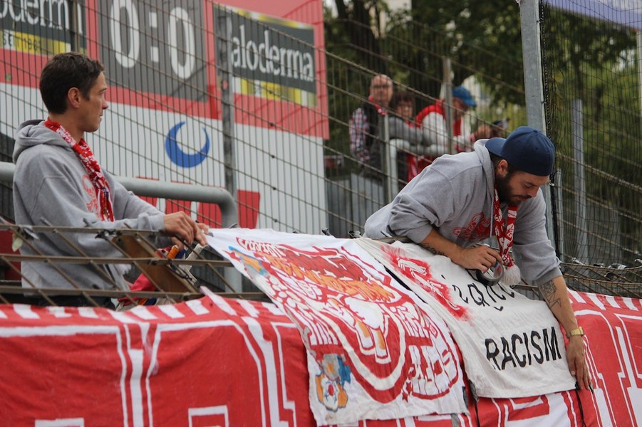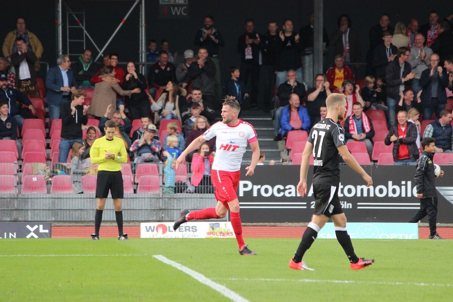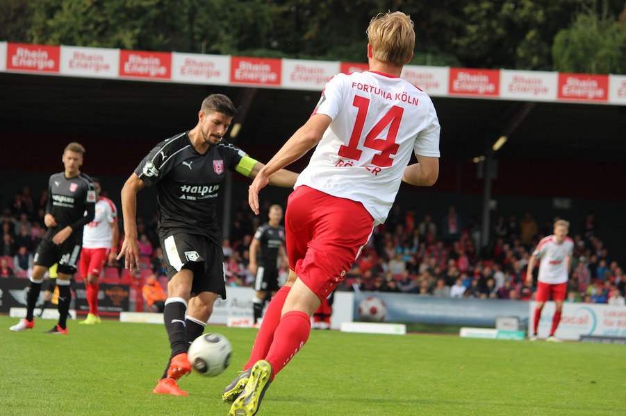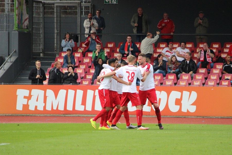 Mit viel Dampf gingen bei Teams ins Duell im Südstadion. Es wurde eine hohe Schlagzahl angeworfen, sodass sich schnell besonders im Mittelfeld ein Abnutzungskampf entwickelte. Im Strafraum war aber lange wenig los, auch wenn Pintol und Dahmani jeweils für ihre Farben erste Abschlüsse verbuchten (7./9.). Halle war aber das etwas griffigere Team, das speziell im Zentrum mit dem auffälligen Fennell selbstbewusster auftrat. Nachdem Pfeffer allein auf das Kölner Tor zu lief und im letzten Moment von Flottmann gestört wurde, erspielten sich die Gäste auf dem Chancenzettel ein leichtes Übergewicht (17.). Das äußerte sich dann auch in Toren, als Fennell eine Flanke aus dem Halbfeld aus kurzer Distanz zur Hallenser Führung einköpfte (26.). Die Fortuna tat sich anschließend schwer, eine Antwort zu geben. Halle agierte kompakt und bot der Kölner Offensive keine Räume, um Druck aufzubauen. So brauchte es einen Eckball, an dessen Ende Souza am zweiten Pfosten in ausreichender Position köpfen konnte (37.). Halle kontrollierte die Partie aber auch weiterhin über die eigene Defensive und setzte mit einem Distanzschuss von Lindenhahn einen offensiven Akzent (43.). Es blieb aber bei der knappen Gästeführung zur Pause.