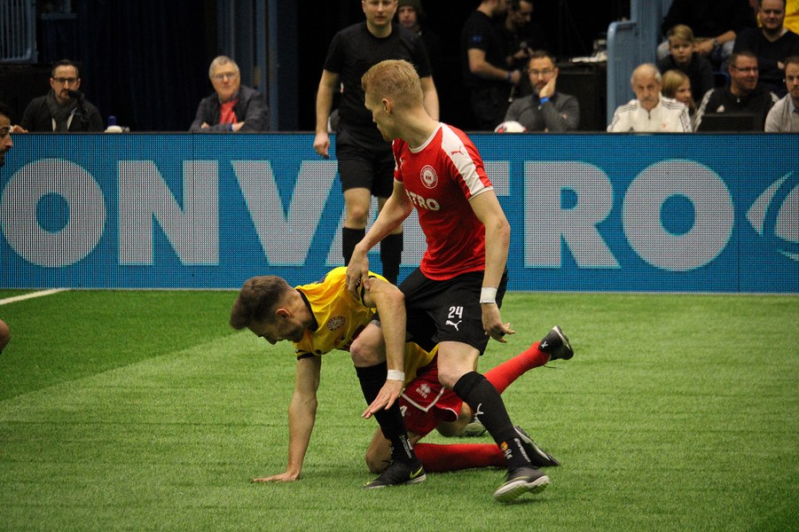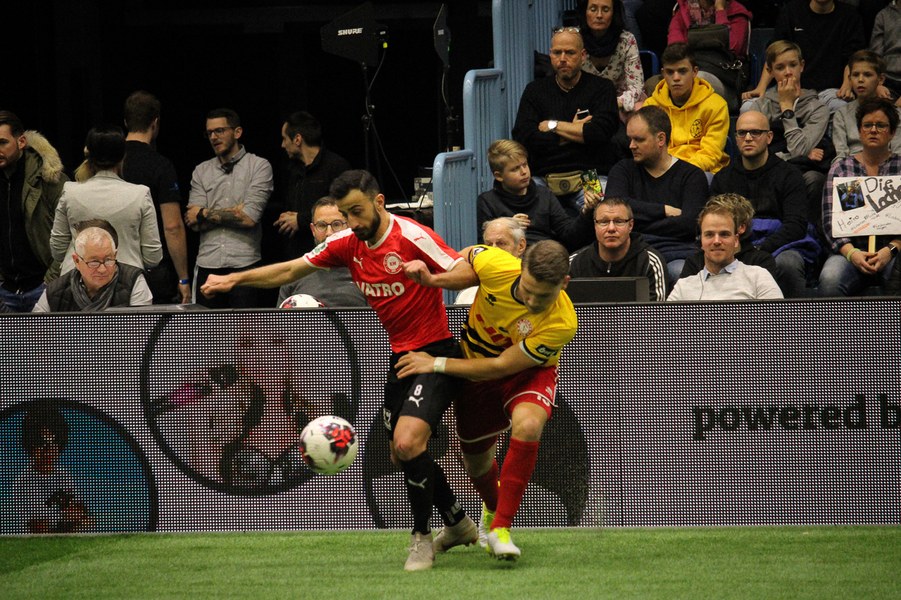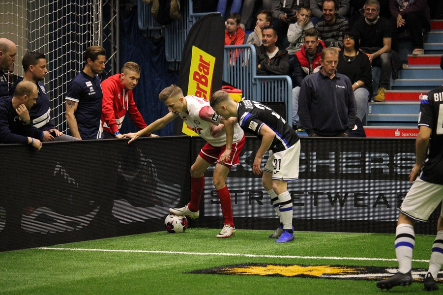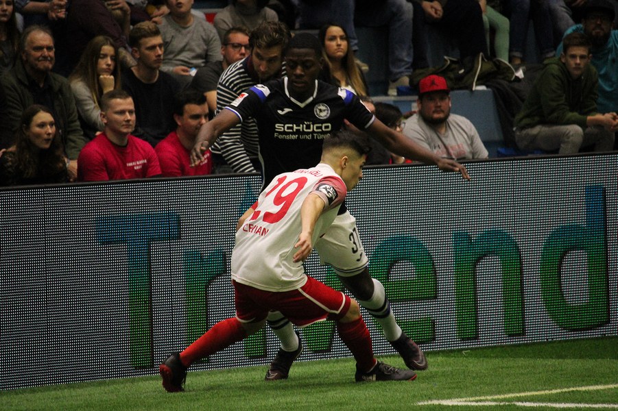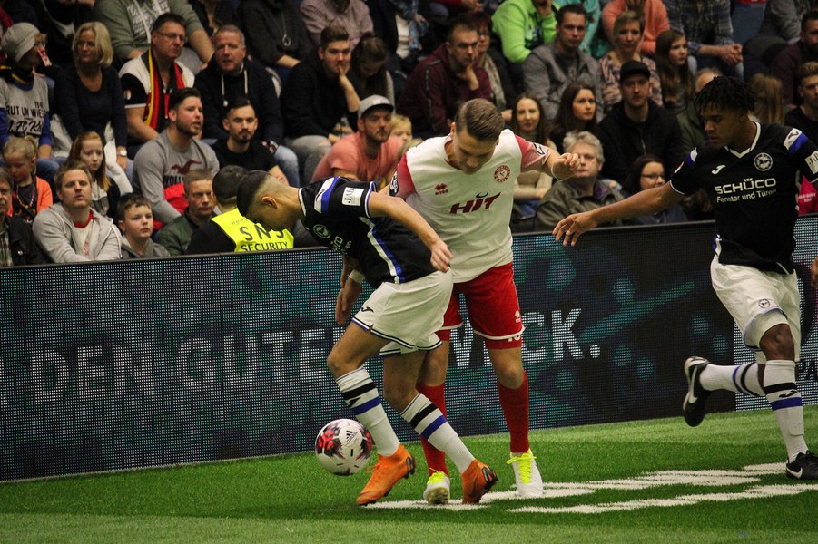 In der ersten Partie der Gruppe B traf Fortuna Köln in der SCHWALBE arena auf Bielefeld. Gegen den Zweitligisten gerieten die Kölner schnell durch ein Tor von Can Özkan in Rückstand. Semir Ucar erhöhte vor dem Seitenwechsel auf 2:0, Özkan noch vor der Pause auf 3:0. Im zweiten Durchgang verwandelte Ucar einen Neunmeter zum 4:0. Nur kurz danach gelang Thomas Idel der 1:4-Anschlusstreffer für die Südstädter. Es folgte das 2:4 durch Alem Koljic. Nico Ochojski hatte anschließend nach feinem Zuspiel von Ali Ceylan sogar die Chance zum 3:4, doch er scheiterte am Bielefelder Torhüter Baboucarr Gaye. So kam es, wie es kommen musste: Arminia konterte den Drittligisten aus und traf durch Cerruti Siya zum 5:2 und in der letzten Spielminute durch Joey Müller zum 6:2.