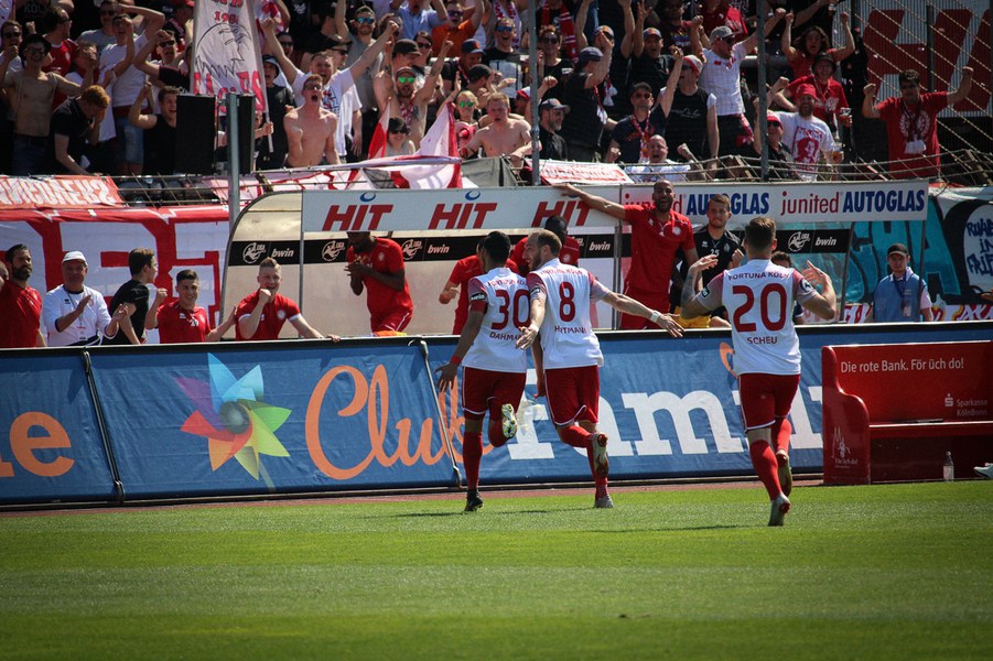 Unterhaching blieb aber ebenso gefährlich. Und in der 29. Minute war es dann so weit: Jim-Patrick Müller stand im Strafraum der Kölner goldrichtig, sein Linksschuss landete im Gehäuse der Fortuna – 1:1.