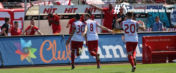 So spielte die Fortuna: Rehnen – Abu Hanna, Ruprecht, Fritz, Bröker (58. Andersen) – Schiek, Eberwein, Brandenburger, Scheu (46. N’Gamukol) – Dahmani (77. Kurt), Hartmann