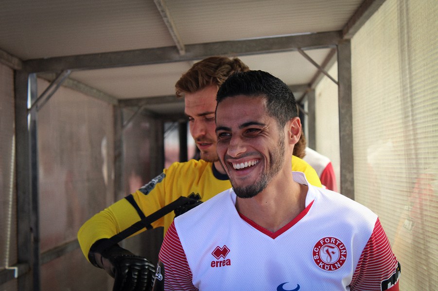 Zwar verbuchte Unterhaching die erste Torchance mit einem Distanzschuss für sich, doch Fortuna Köln wirkte anfangs sehr präsent. Und das machte sich bezahlt. Mit einem fulminanten Volleysschuss aus 28 Metern erzielte Kapitän Dahmani in der 16. Minute das 1:0 für die Südstädter – Unterhachings Schlussmann Lukas Königshofer war chancenlos.