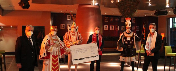 3.333,33 EUR konnten Josef und Marcel Hergarten sowie Präsident Hanns-Jörg Westendorf an Prinz Sven I., Bauer Gereon und Jungfrau Gerdemie übergeben. Der Betrag kommt dem Verein TrauBe e.V., Trauerbegleitung von Kölner Kindern, Jugendlichen und jungen Erwachsenen, zugute.