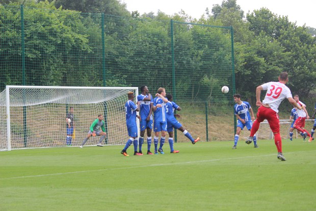 Dabei begann die Fortuna furios. Bereits in der sechsten Spielminute erzielte Lars Bender das 0:1 nach einem langen Ball von Cimo Röcker. Das Tor war bis dato schon die dritte gute Chance der Kölner. Ein gehaltener Elfmeter von Tim Boss war der Weckruf um die Konzentration wieder hochzufahren. Dies gelang in der 24. Minute als ein Konter über Brasnic und Souza im zweiten Anlauf von Maik Kegel versenkt wurde. Ein satter Distanzschuss des Neuzugangs wurde unhaltbar abgefälscht. Nach einer Reihe weiterer Chancen war es wieder Kegel, der in der letzten Minute der ersten Halbzeit einen Freistoß aus 20 Metern von halblinker Position ins lange Eck verwandelte. Den Anschlusstreffer erzielten die Belgier kurz nach der Halbzeit. Nach einem Ballverlust in der eigenen Hälfte der Kölner lupfte Messa über Poggenborg, welcher noch zu weit vor seinem Tor stand.