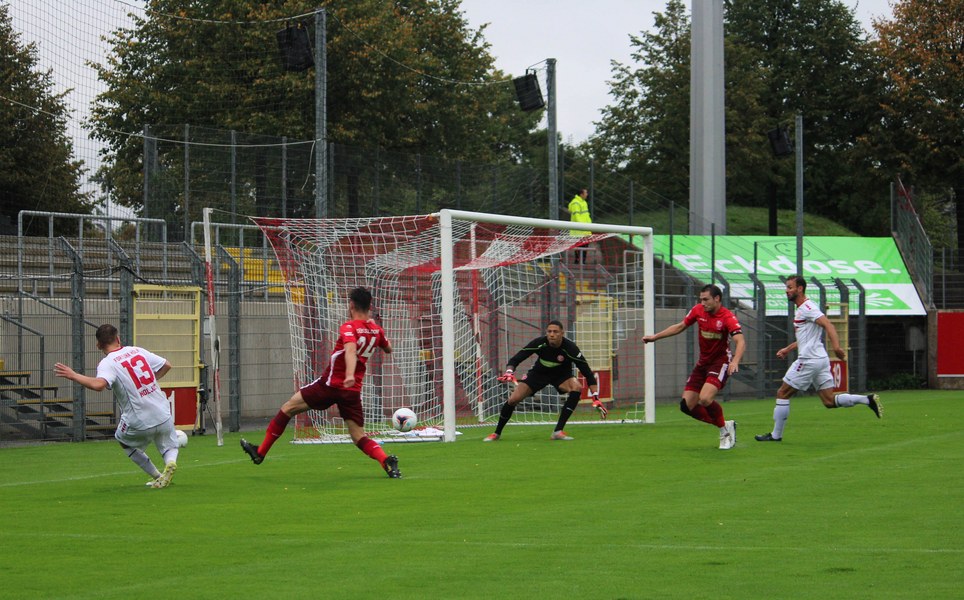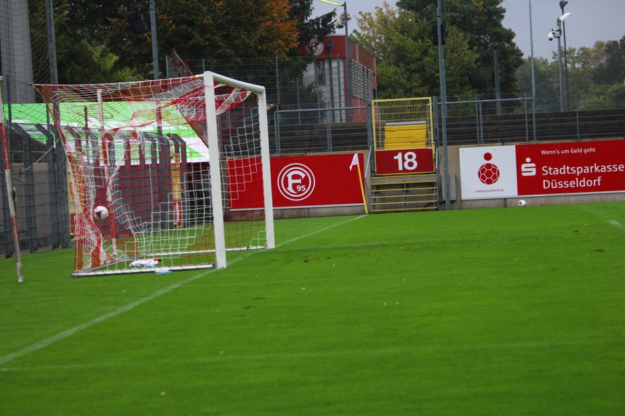 Wie auch schon in Gladbach kam Fortuna in Halbzeit zwei besser aus der Kabine und legte vor allem kämpferisch eine Schüppe oben drauf. Nico Ochojski eroberte am eigegen Sechzehner den Ball und machte sich auf die Reise. Kurz vor dem Kasten von Maduka Okoye nahm er Mike Owusu mit. Owusu steckte noch einmal auf Koljic durch, der eine Ecke rausholte (58.). Die Ecke selbst brachte keine Gefahr ein, der daraus entstandene Freistoß jedoch umso mehr. Aus gut 18 Metern zog Koljic den Ball direkt auf das Tor und Okoye musste blitzschnell abtauchen, um den Ball noch vor der Linie zu klären (59.). Auch Owusu blieb glücklos und verfehlte kurze Zeit später mit seinem Abschluss das Tor (65.). Fortuna kontrollierte das Spiel, blieb aber vor dem Tor nicht zwingend genug, um sich für den Aufwand zu belohnen. Und wie es dann im Fußball ist, kann es auch mal ganz schnell gehen. Laws zog den Ball auf das Tor und holt mit seinem Schuss eine Ecke raus. Die Hereingabe zimmert Max Wegner mit dem Kopf an die Latte. Wieder Glück für die Südstädter. Fortuna drückte weiter auf den zweiten Treffer, verpasste das Tor in Person von Lars Bender aber denkbar knapp. Das Team von Thomas Stratos machte das Spiel nach einem Freistoß schnell und schickte Bender auf die Reise, der allein auf Okoye zulief und den Ball am Ende knapp am langen Pfosten vorbei schob (80.). Ebenso knapp machte es Jannes Hoffman, der nach Ablage von Owusu nur vom Keeper gestoppt werden konnte (82.). Am Ende blieb es beim 1:1 am Flinger Broich.