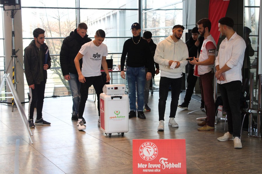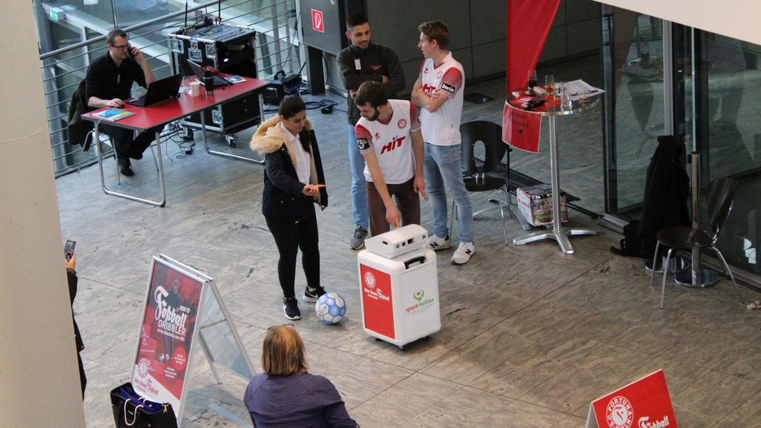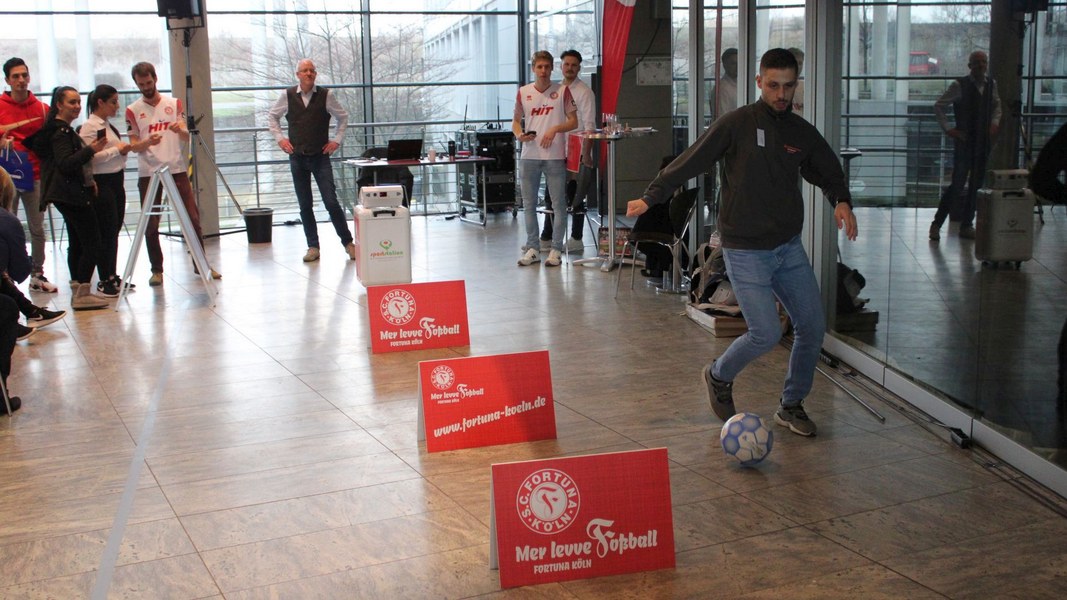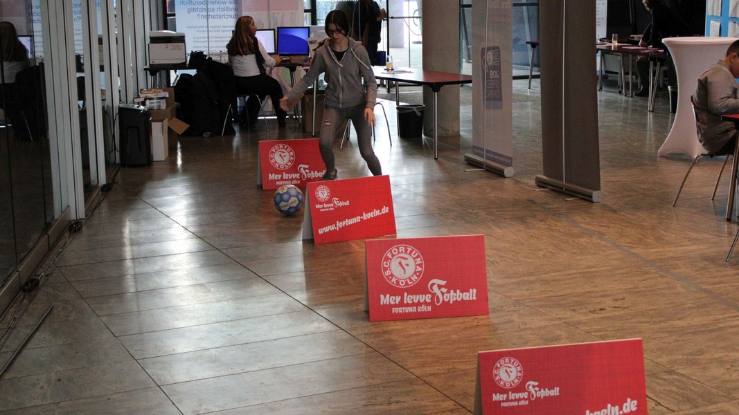 Organisiert vom TÜV Nord nutzten am Mittwoch rund 350 junge Menschen (bis 25 Jahre alt) die Chance, sich in Köln abseits von langwierigen Bewerbungsverfahren interessierten Unternehmen zu präsentieren. Aber auch abseits der Ausbildungsplatzsuche gab es etwas zu erleben. Denn Fortuna Köln war mit dem „Foßballdribbler“ vor Ort. Egal ob Unternehmer oder Ausbildungssuchende, jeder konnte mitmachen – und die eigene Schnelligkeit beim Dribbling unter Beweis stellen. Und das lohnte sich. Schließlich hatte jeder Teilnehmer die Chance, interessante Preise zu gewinnen.