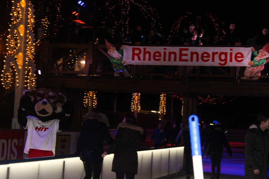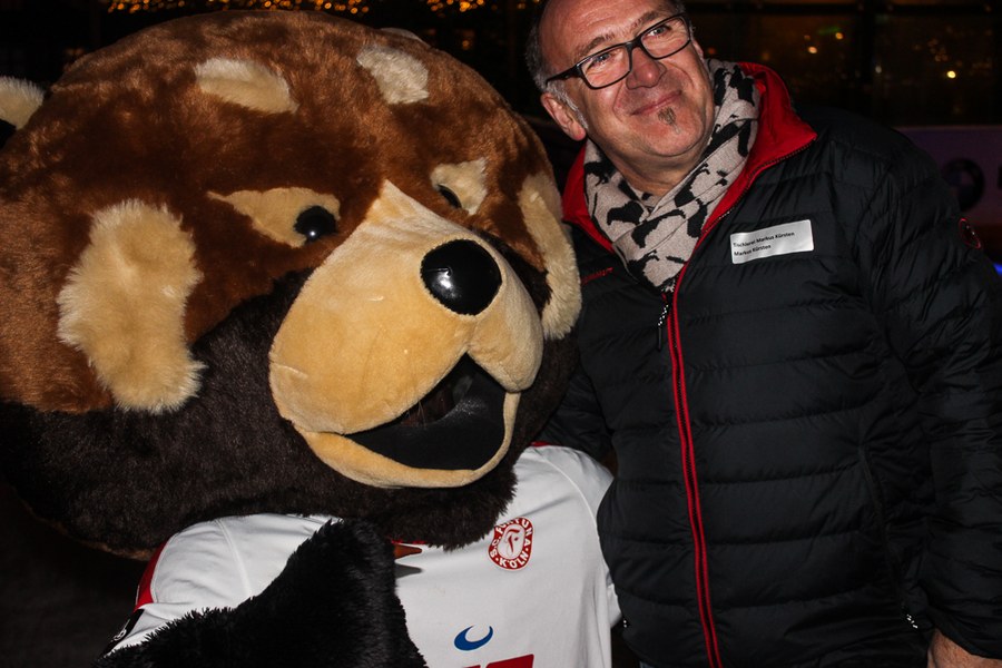 Fortuna-Panda Fred war auch dabei und sorgte für gute Laune. So schnürrte Fred die Schlittschuhe und ging mit Kindern auf die Eisbahn.