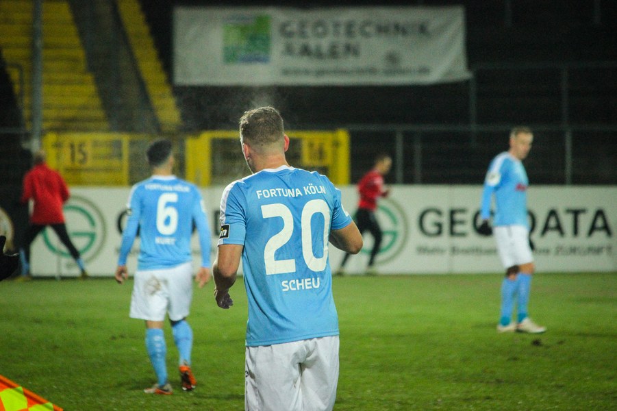 Der VfR Aalen konnte die letzten vier Heimspiele gewinnen und startete daher mit einer breiten Brust in die Begegnung. Die Fortuna hatte nicht die ganz großen Erfolgserlebnisse zuletzt, begann aber vielversprechend. Man versuchte aktiv zu sein und hatte so mehr vom Spiel. Nach einem Ballverlust gab es jedoch die kalte Dusche, als Morys Innenverteidiger Bender davon lief und durch die Beine von Boss abschloss (13.). Der Rückstand schockte die Fortuna, während Aalens Brust breiter wurde. Wenig später hätten die Süddeutschen erhöhen können! Die Fortuna spielte nach einem Freistoß auf Abseits aber Schnellbacher kam, für den Schiedsrichter legal, an den Ball, jagte das Leder aber aus kurzer Distanz über das Tor (16.). Zudem lenkte Boss einen fulminanten Distanschuss von Preißinger mit den Fingerspitzen über den Kasten (22.). In der Folgezeit zog sich der Gastgeber etwas zurück. Es entstand ein Spiel, was größtenteils im Mittelfeld ausgetragen wurde. Die Fortuna war weiter das gefälligere Team. Es dauerte aber eine halbe Stunde als eine Kombination der Kölner zum Abschluss kam - Dahmani schoss von der Strafraumkante aus drüber (29.). Aalen lauerte speziell auf Gegenstöße, gefährlich wurde es vor der Pause auf beiden Seiten aber nicht mehr, sodass es mit dem 0:1 aus Kölner Sicht in die Kabine ging.