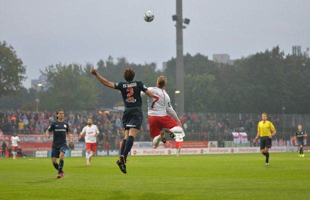 Die Fortuna gewinnt auch ihr drittes Spiel in Folge gegen einen direkten Konkurrenten und verschafft sich etwas Luft von den Abstiegsplätzen. Vor 2.293 Zuschauern sicherte Micheal Kessel mit seinem Tor den Kölnern einen verdienten Heimsieg (31.). Dabei entwickelte sich in der ersten Halbzeit zunächst eine abwechslungsreiche Partie, in der beide Mannschaften mit hoher Intensität den direkten Weg zum Tor suchten. Die Fortuna hatte dabei durch einen Freistoß von Pazurek (7.) und einen Schuss von Kraus (29.) die besseren Möglichkeiten für sich. Somit gingen die Gastgeber nicht unverdient in Führung, als Kessel nach einem Abschlag von Poggenborg den Ball durch die Hände von Hahnel ins Tor schoss (31.). Für die Gäste konnte Bickel die beste Möglichkeit zum Ausgleich verbuchen, als der Rostocker frei vor Poggenborg den Ball am Tor vorbei legte (33.).