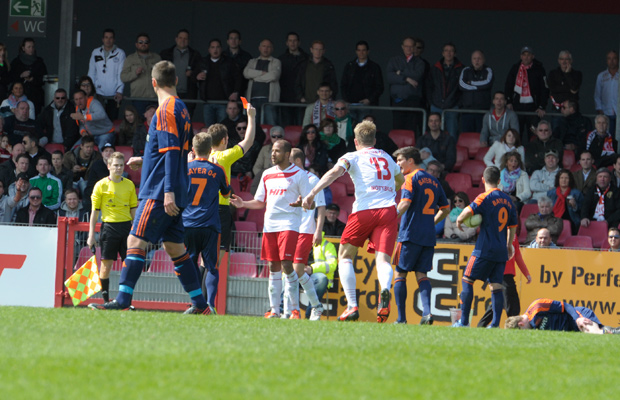 Seit gestern Abend ist es klar. Die Fortuna muss vier Spiele auf Thiemo-Jérôme Kialka verzichten. Der Stürmer hatte im Spiel gegen die U23 von Bayer 04 Leverkusen nach einem unsportlichen Verhalten die Rote Karte gesehen. Am gestrigen Montag-Abend verhängte der Verband nun eine Sperre von vier Spielen für den Stürmer. Kialka ist damit erst am 37. Spieltag zu der Partie bei der U23 des MSV Duisburg wieder spielberechtigt.