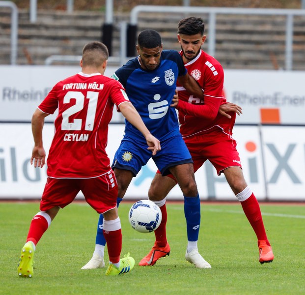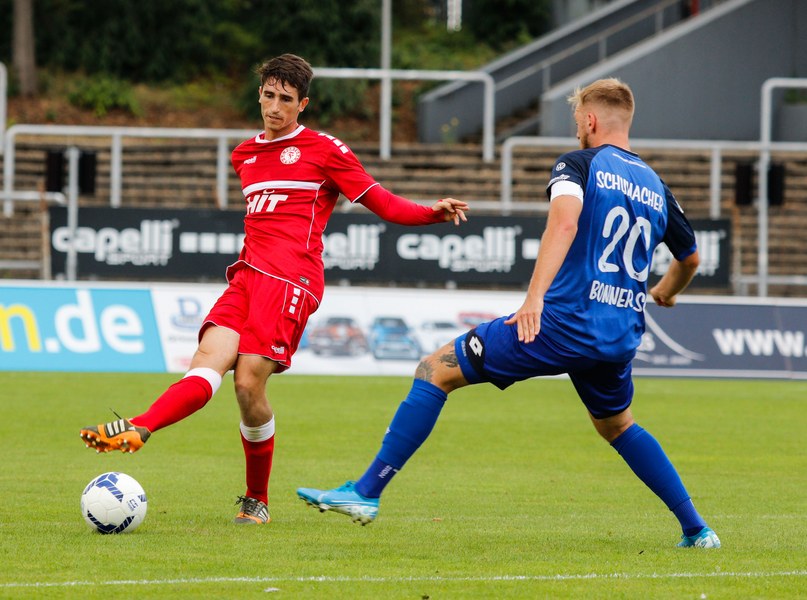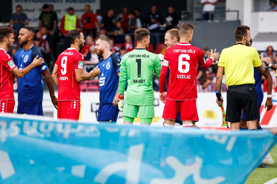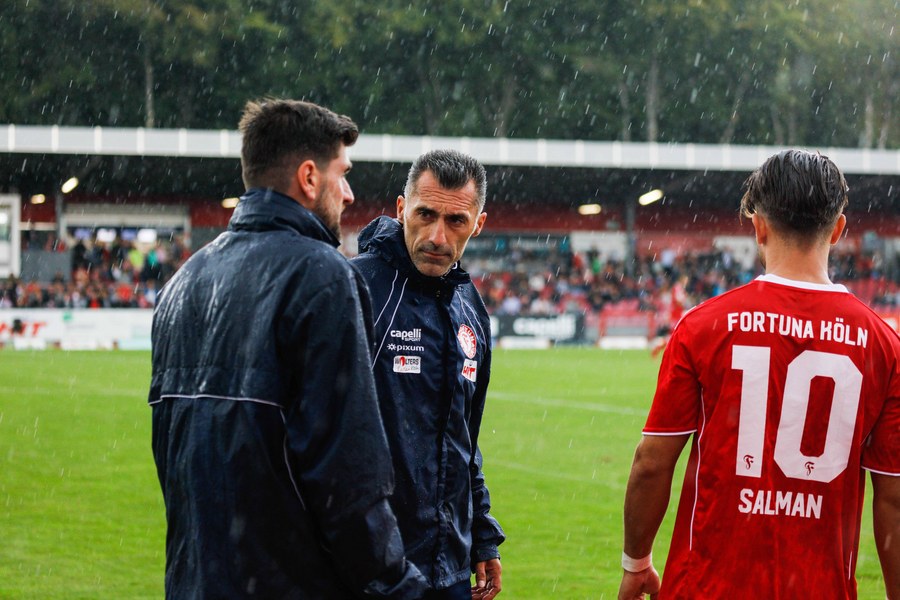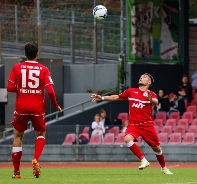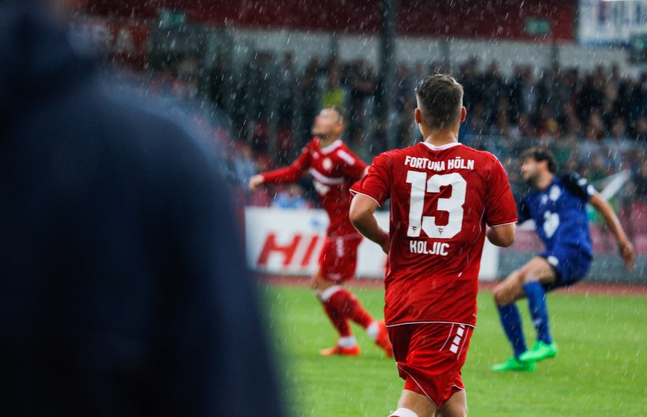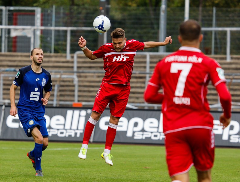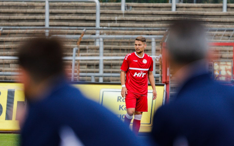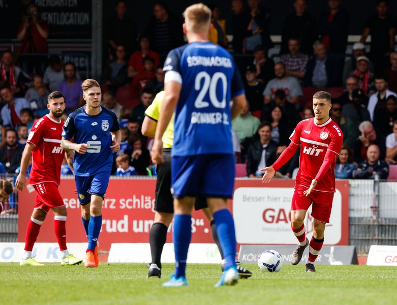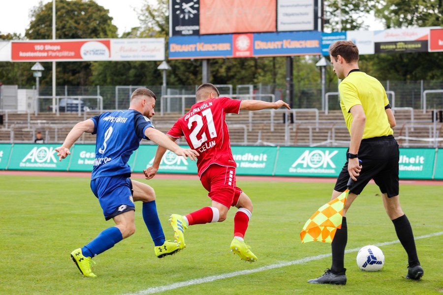Fast einen Monat ruhte der Ball im Kölner Südstadion, ehe die Fortuna am heutigen Samstag den Bonner SC empfing. Im Vergleich zum ersten Saisonsieg gegen den SV Lippstadt stellte Thomas Stratos sein Team auf zwei Positionen um. Dennis Brock rückte für Noe Baba auf die Sechserposition, Farid Abderrahmane ersetzte Hamza Salman. Der erste Vorstoß des Spiels ging auf das Konto der Fortuna. Idrizi startete über links und konnte kurz vor der Grundlinie nur mit einem Foul gestoppt werden. Den anschließenden Freistoß schlug Alem Koljic auf den Kopf von Roman Prokoph. Der Stürmer setzte den Ball aber deutlich drüber (3.). Fortuna stand hinten kompakt und schaffte es vorerst, die Angriffe der Bonner zu vereiteln. Bis zur 17. Spielminute, ehe Kevin Rauhut gleich doppelt geprüft wurde. Der Kölner Keeper behielt jedoch die Oberhand und klärte zur Ecke, die keine Gefahr brachte. Für mehr Gefahr sorgte hingegen Nico Ochojski. Der Verteidiger fasste sich von der halbrechten Position ein Herz und zog aus gut 25 Metern einfach mal ab. Der Ball wurde immer länger und segelte nur knapp über das Tor von Robin Benz (21.). Fortuna blieb weiter am Drücker und kam nach Fouls immer wieder zu Freistößen rund um den Bonner Strafraum. Sowohl Idrizi direkt (25.), als auch Abderrahmane mit dem zweiten Ball (28.) setzten zu hoch an. Auf der Gegenseite versuchte es Schumacher aus der Distanz, tat es aber den Fortunen gleich und setzte den Ball über das Tor (30.). So bekamen die Zuschauer im Südstadion vor der Halbzeit keine Tore zu sehen.
