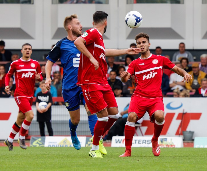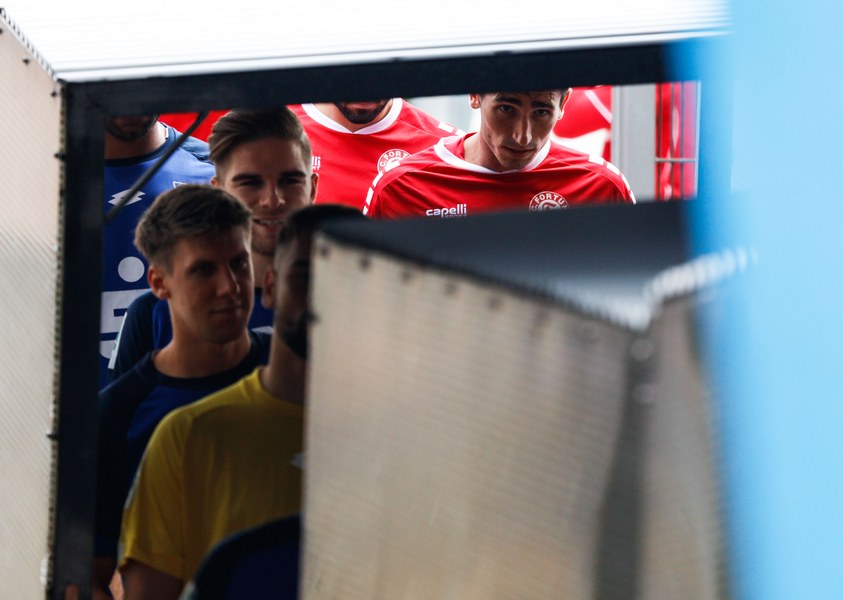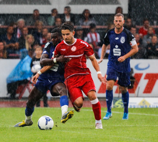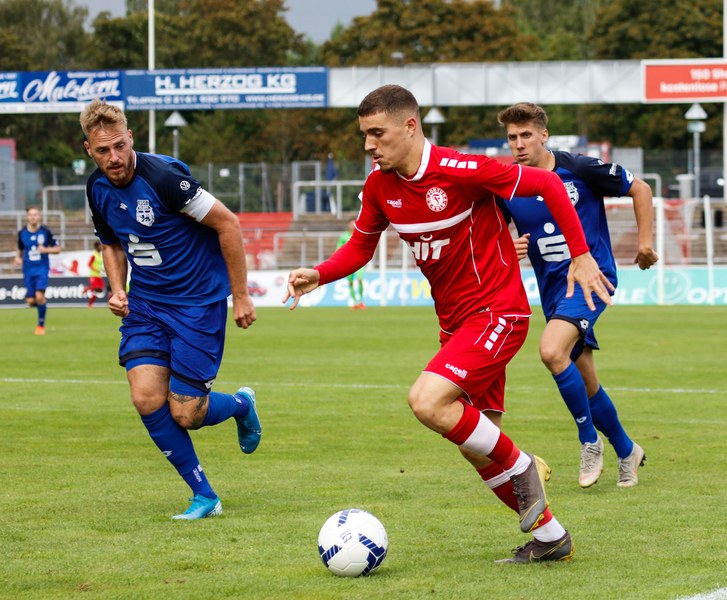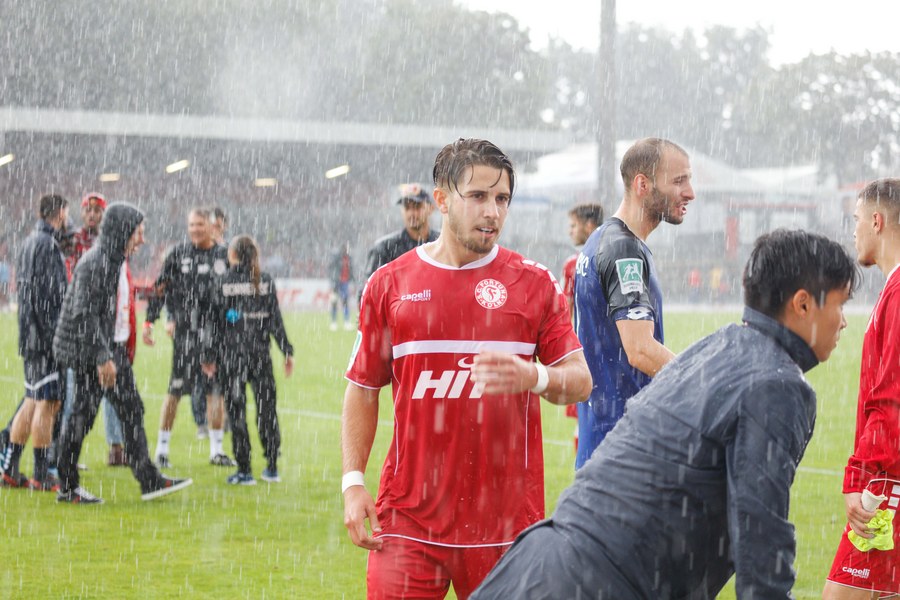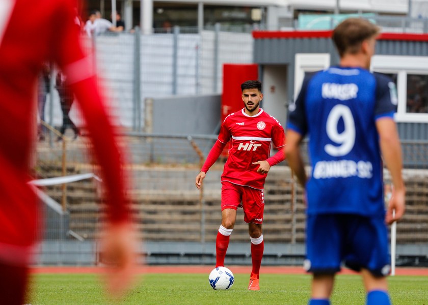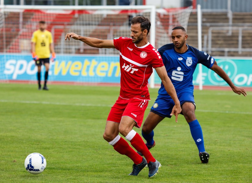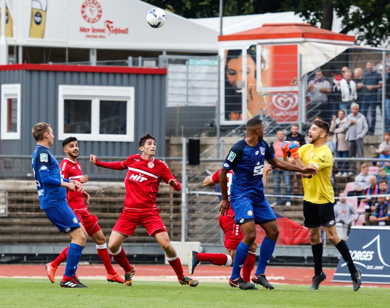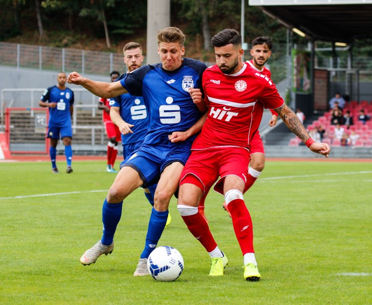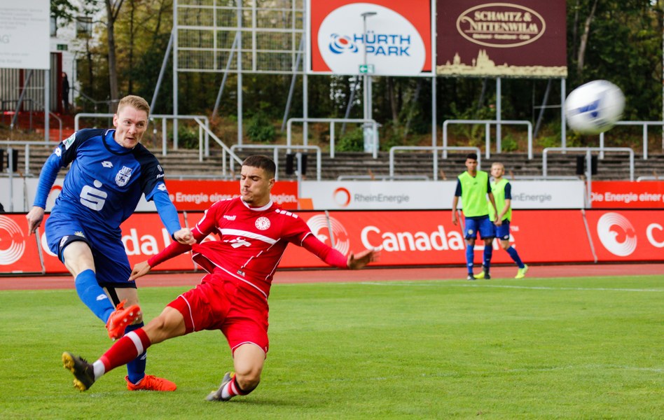 Fast einen Monat ruhte der Ball im Kölner Südstadion, ehe die Fortuna am heutigen Samstag den Bonner SC empfing. Im Vergleich zum ersten Saisonsieg gegen den SV Lippstadt stellte Thomas Stratos sein Team auf zwei Positionen um. Dennis Brock rückte für Noe Baba auf die Sechserposition, Farid Abderrahmane ersetzte Hamza Salman. Der erste Vorstoß des Spiels ging auf das Konto der Fortuna. Idrizi startete über links und konnte kurz vor der Grundlinie nur mit einem Foul gestoppt werden. Den anschließenden Freistoß schlug Alem Koljic auf den Kopf von Roman Prokoph. Der Stürmer setzte den Ball aber deutlich drüber (3.). Fortuna stand hinten kompakt und schaffte es vorerst, die Angriffe der Bonner zu vereiteln. Bis zur 17. Spielminute, ehe Kevin Rauhut gleich doppelt geprüft wurde. Der Kölner Keeper behielt jedoch die Oberhand und klärte zur Ecke, die keine Gefahr brachte. Für mehr Gefahr sorgte hingegen Nico Ochojski. Der Verteidiger fasste sich von der halbrechten Position ein Herz und zog aus gut 25 Metern einfach mal ab. Der Ball wurde immer länger und segelte nur knapp über das Tor von Robin Benz (21.). Fortuna blieb weiter am Drücker und kam nach Fouls immer wieder zu Freistößen rund um den Bonner Strafraum. Sowohl Idrizi direkt (25.), als auch Abderrahmane mit dem zweiten Ball (28.) setzten zu hoch an. Auf der Gegenseite versuchte es Schumacher aus der Distanz, tat es aber den Fortunen gleich und setzte den Ball über das Tor (30.). So bekamen die Zuschauer im Südstadion vor der Halbzeit keine Tore zu sehen.