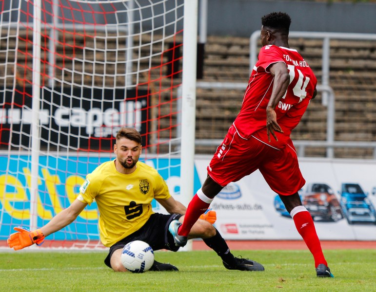 Zur zweiten Halbzeit brachte Thomas Stratos Mike Owusu für Ali Ceylan. Der wuchtige Offensivmann agierte hinter der Spitze, Abderrahmane rückte dafür auf die rechte Außenbahn. Den ersten Versuch in Halbezeit zwei wagte der Bonner Dario Schumacher. Ohne Bedrängnis ging er auf das Tor von Rauhut zu und setzte zum Schuss an. Ohne Wucht landete der Ball jedoch in den Armen des Fortuna Keepers. Für mehr Gefahr sorgte schließlich die Fortuna. Erst musste Robin Benz eine Bogenlampe von der Latte kratzen (51.), dann scheiterten auch Koljic und Owusu am Keeper (56.). Es war die bisher beste Phase der Fortuna im Spiel. Doch auch Mike Owusu und Roman Prokoph schafften es im Verbund nicht, den Ball im Tor unterzubringen (65.). Dann ging es Schlag auf Schlag im Südstadion: Während Schumacher erst nur die Latte traf (73.), vollendete Omerbasic kurz danach einen Konter und schob zur Führung der Gäste ein (75.). Thomas Stratos kurbelte mit den Einwechslungen von Semih Güler und Hamza Salman noch einmal den Offensivmotor an, ein Treffer wollte der Fortuna jedoch nicht mehr gelingen.