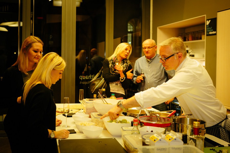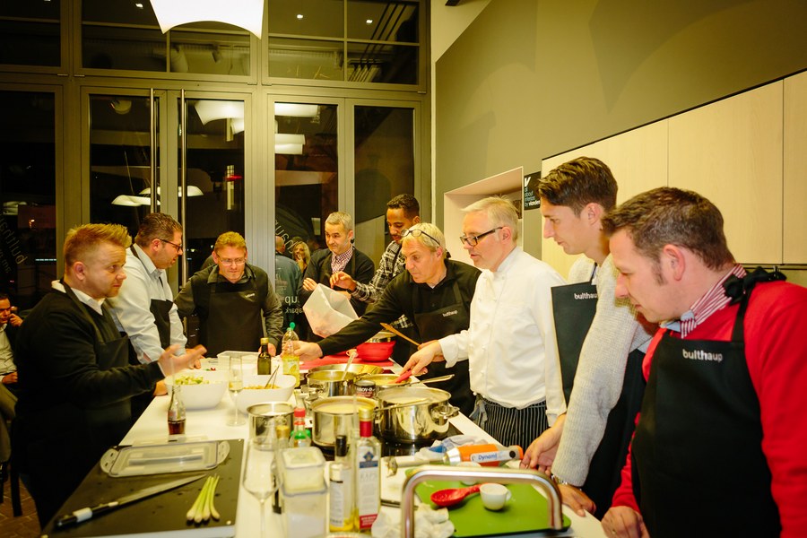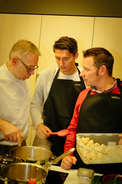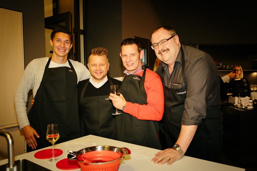 Kochevent bei bulthaup am Mediapark - Pazurek, Uaferro und Rahn kochen mit Fortuna-Partnern